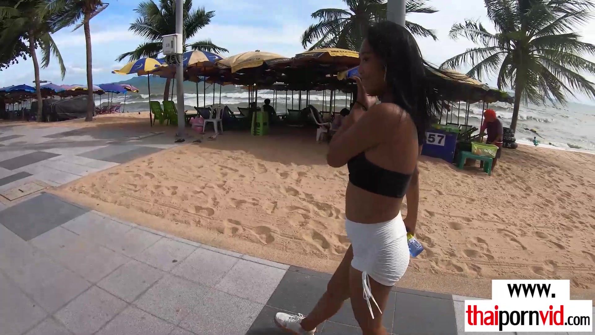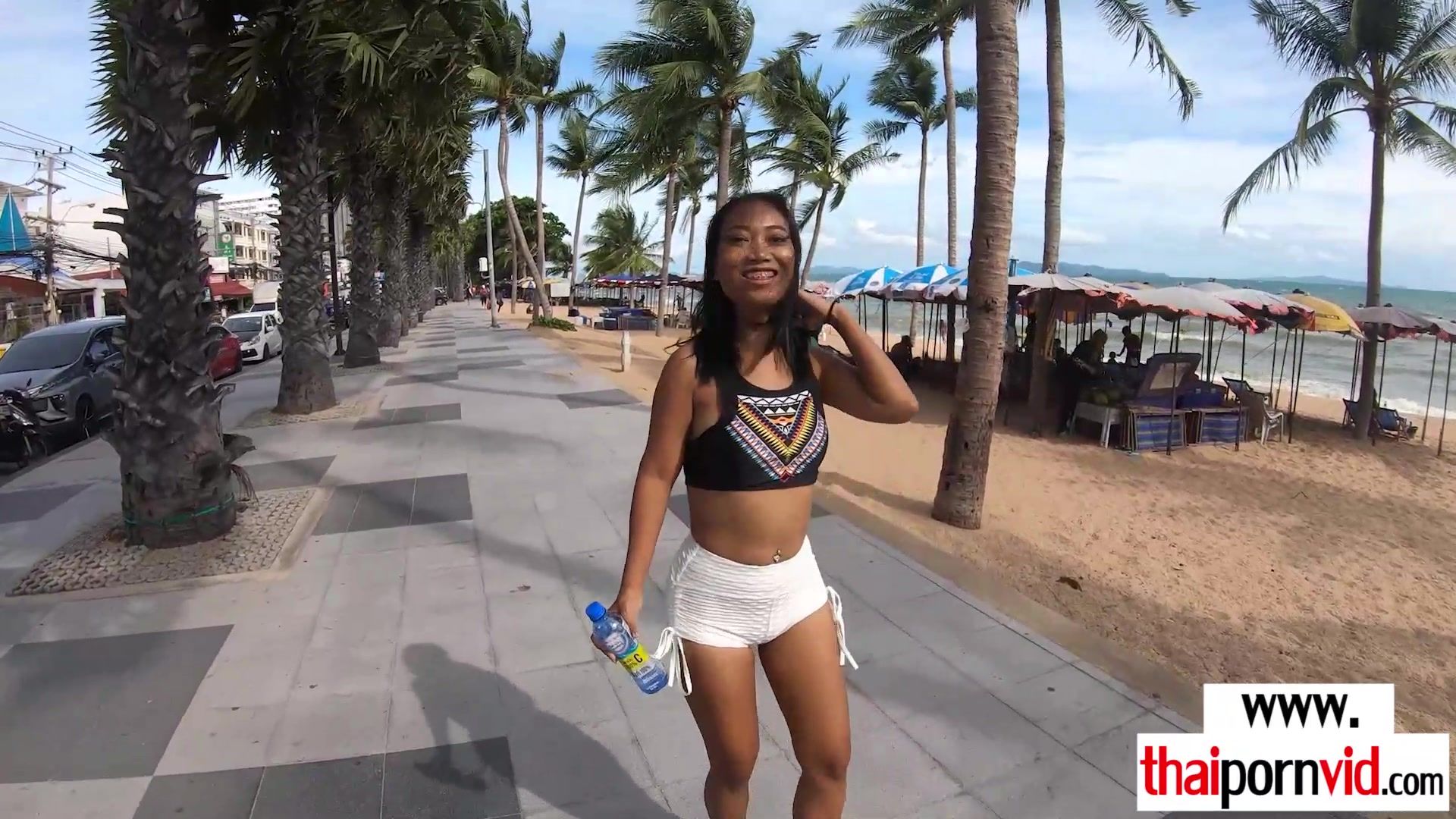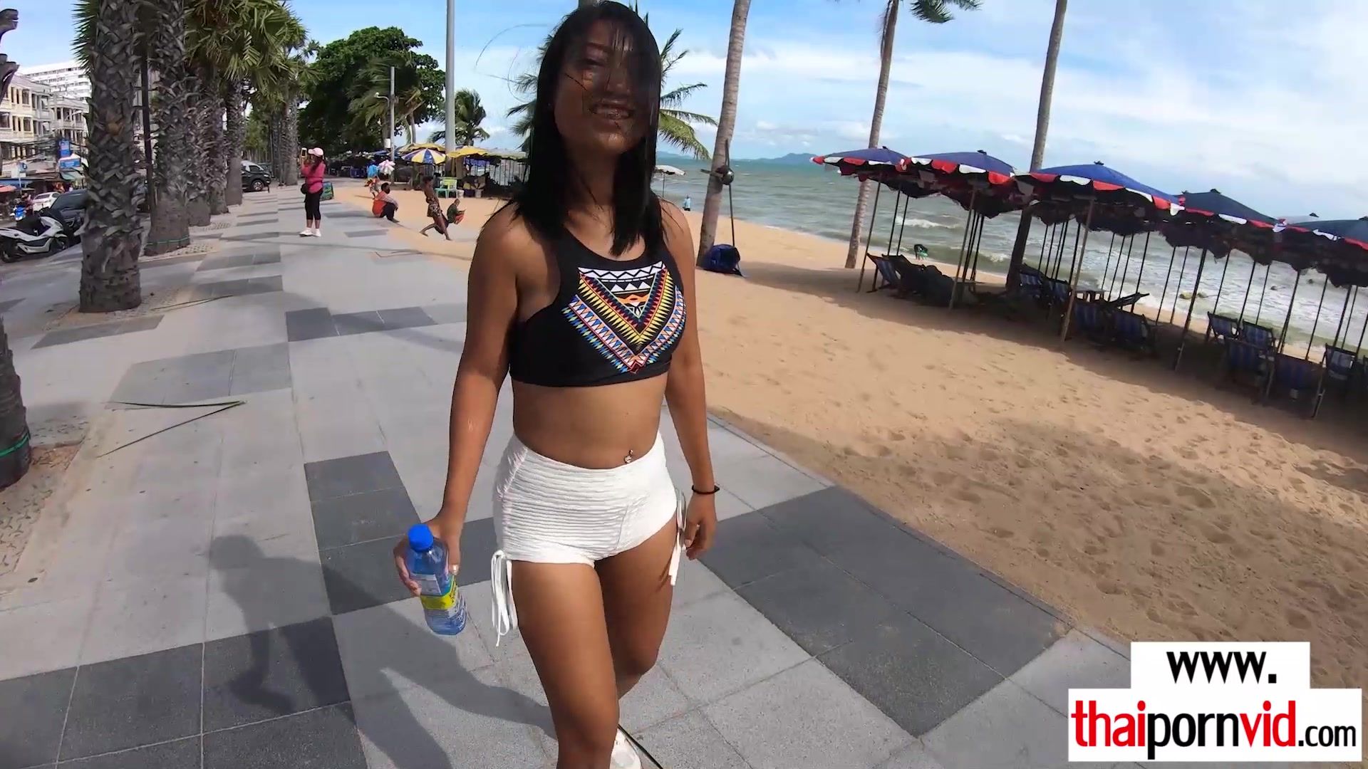 Petite amateur Thai teen Kan with small tits goes home after her daily workout and she wants to relax on her european lovers big white cock She is giving him an exotic blowjob then he is fucking her shaved asian pussy gently in doggystyle