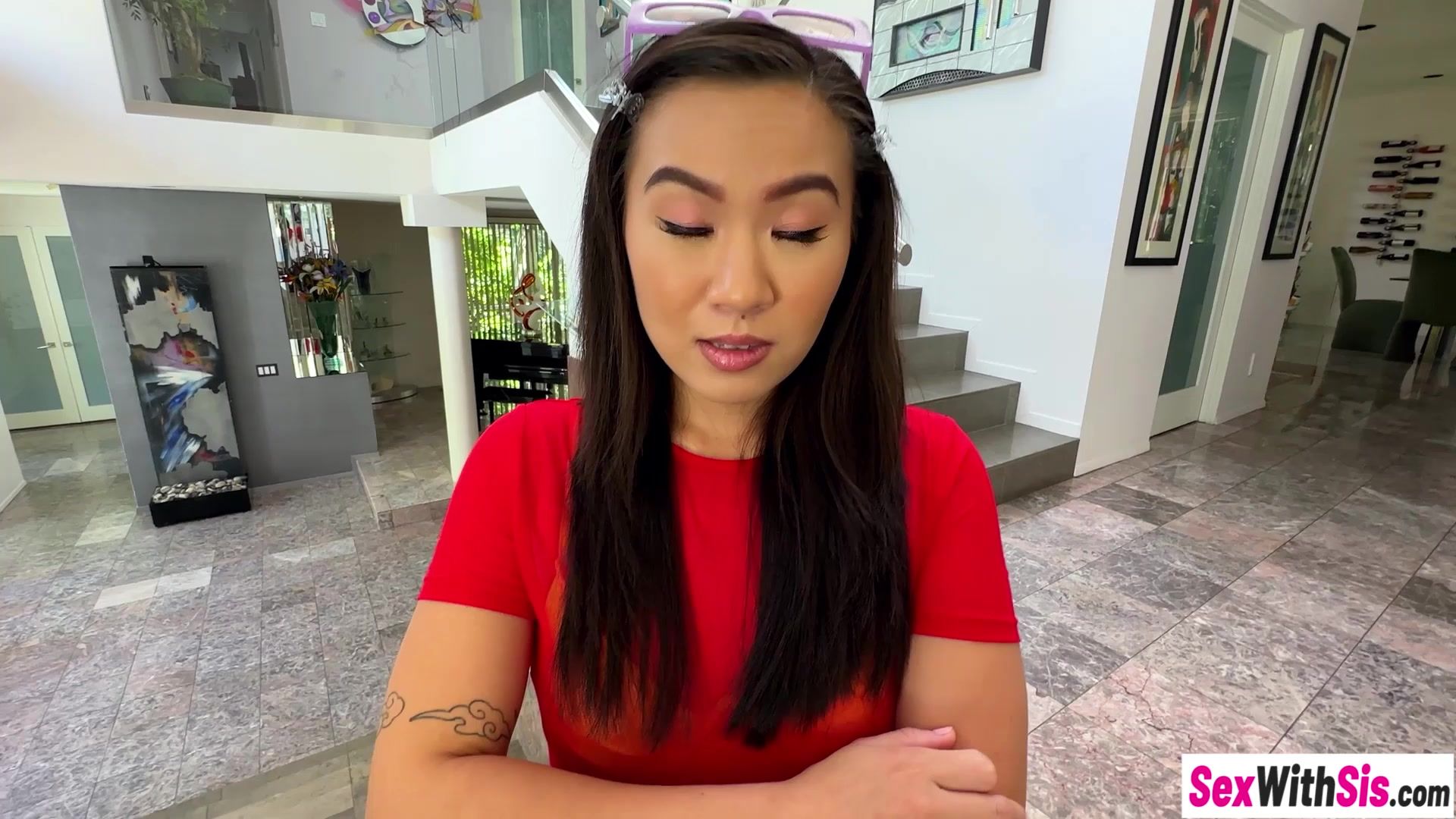 Asian teen stepsis begs stepbro to fuck her and hot babe ganged by stepbro