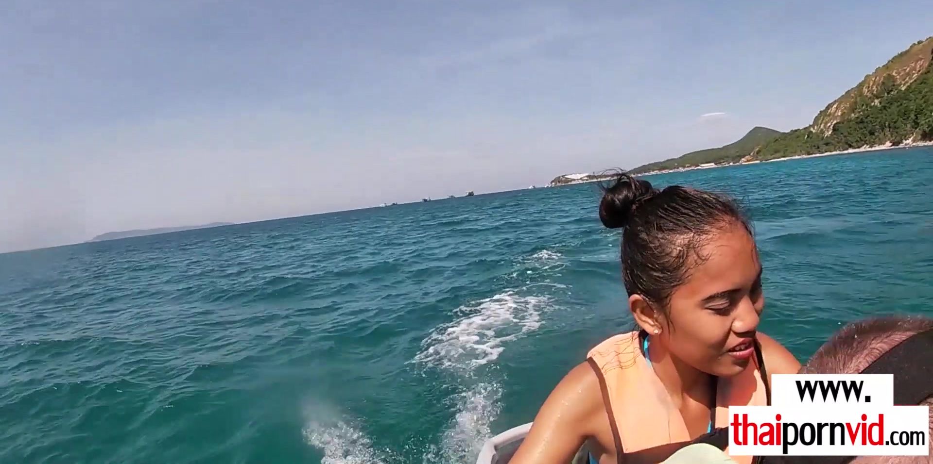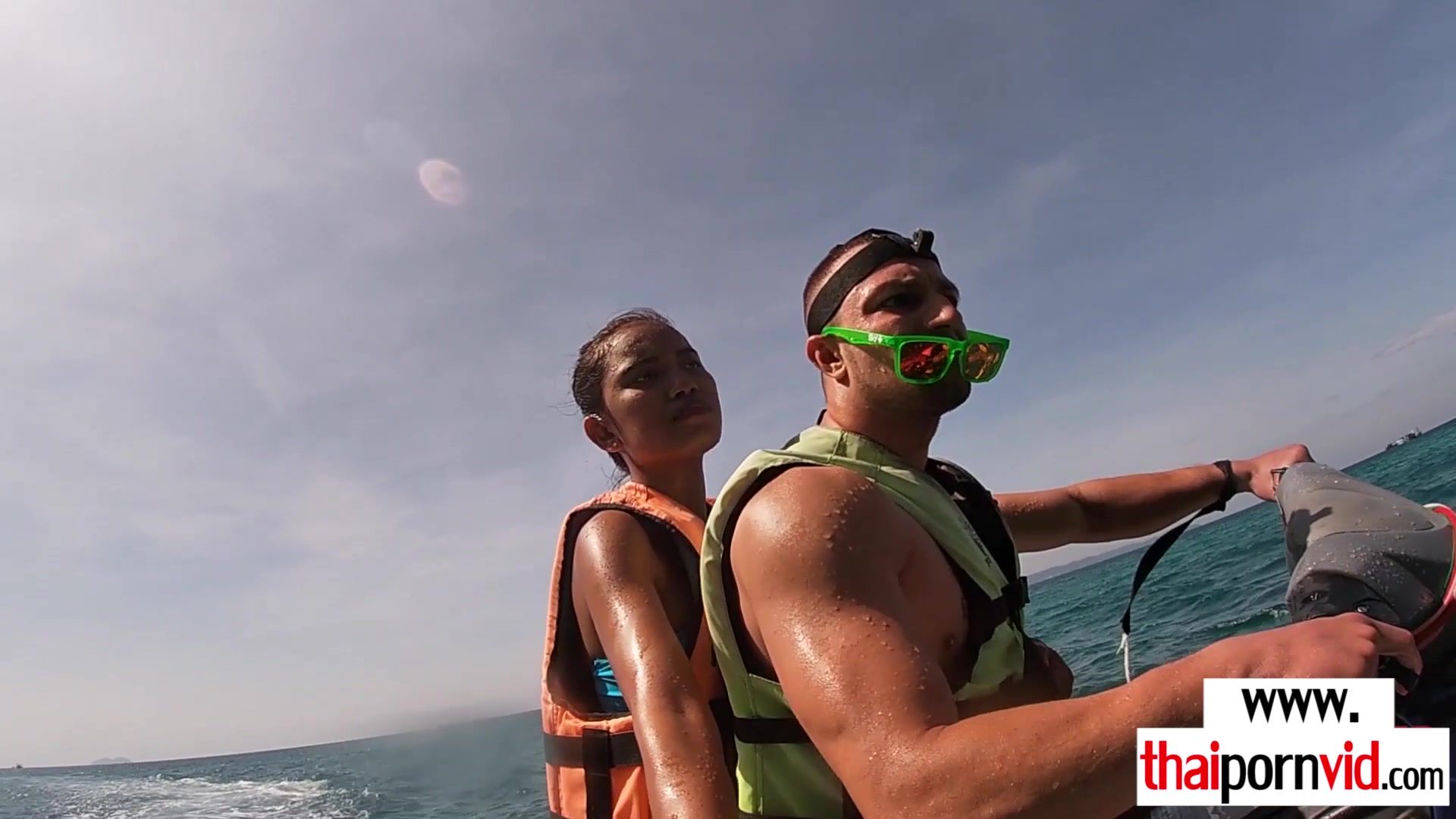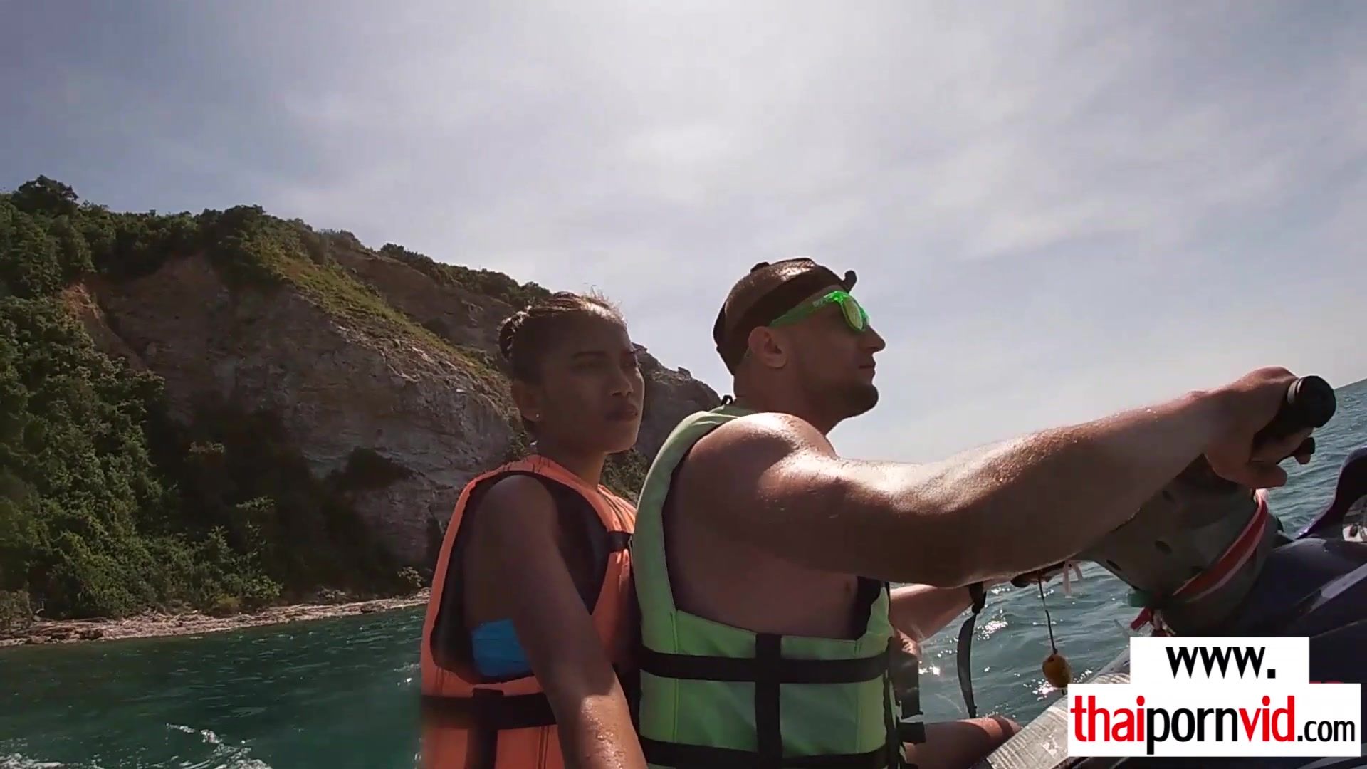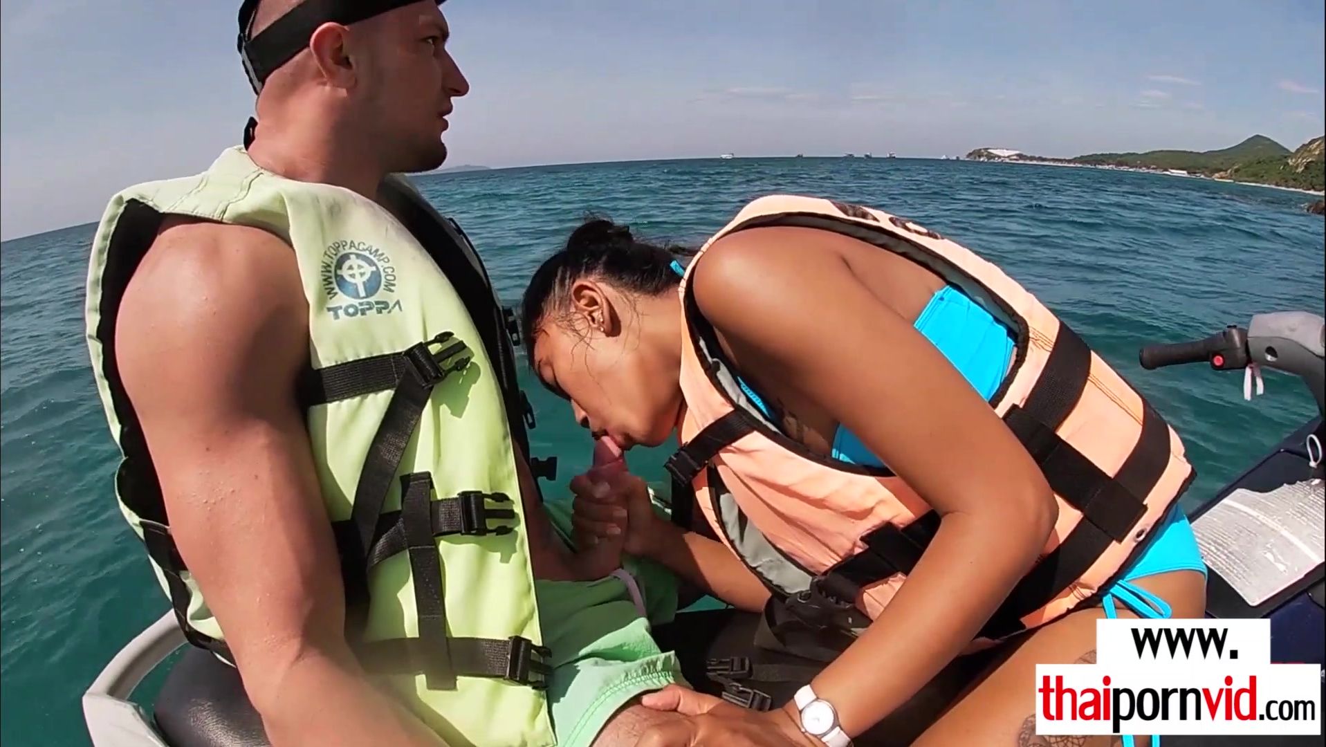 Petite amateur Thai teen Cherry with small tits and her european lover enjoying the summer on a jet ski The guy stops it and asks her to empty his saturated balls So she takes his big white cock and starts giving him a sensual blowjob outdoor