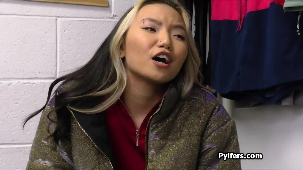 Perky pierced Asian has stolen something from the store