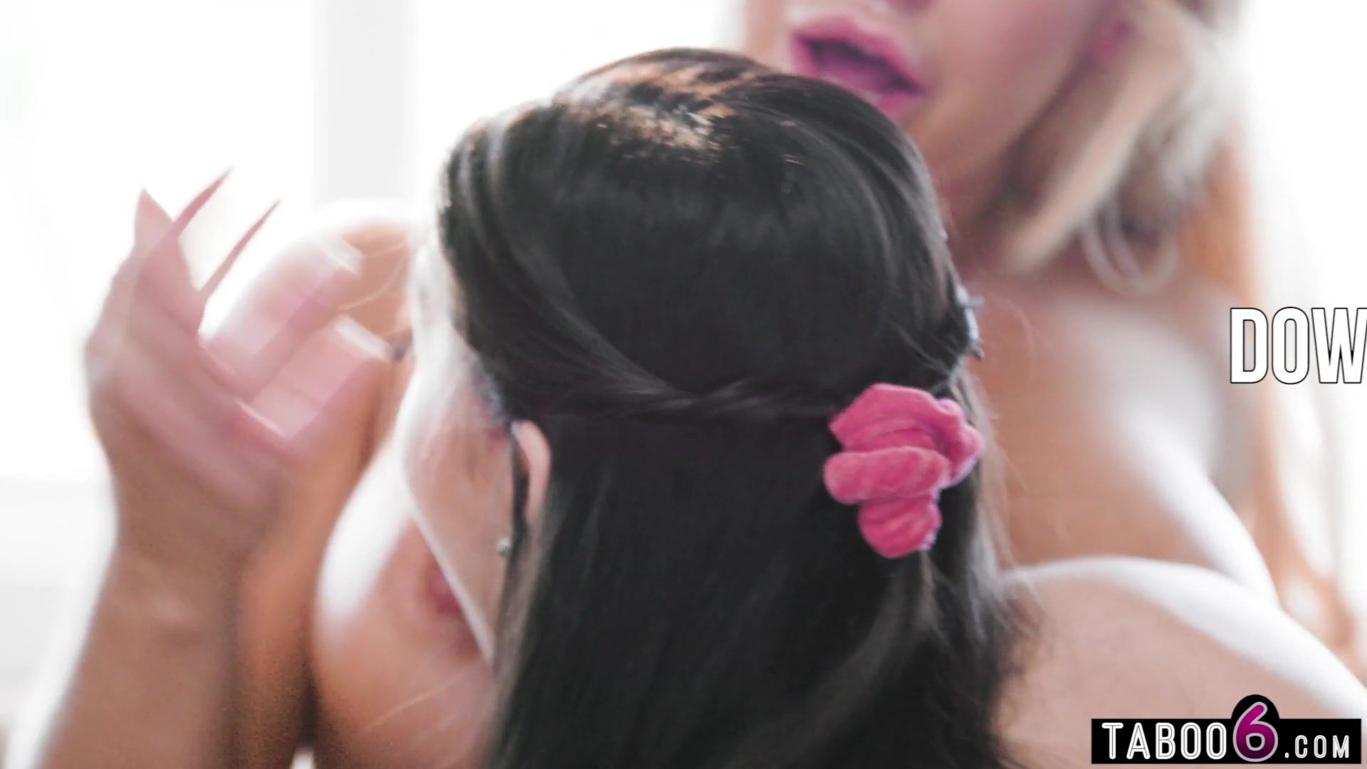 Korean teen babysitter Kimmy Kimm lesbian sex with MILF wife Spencer Scott