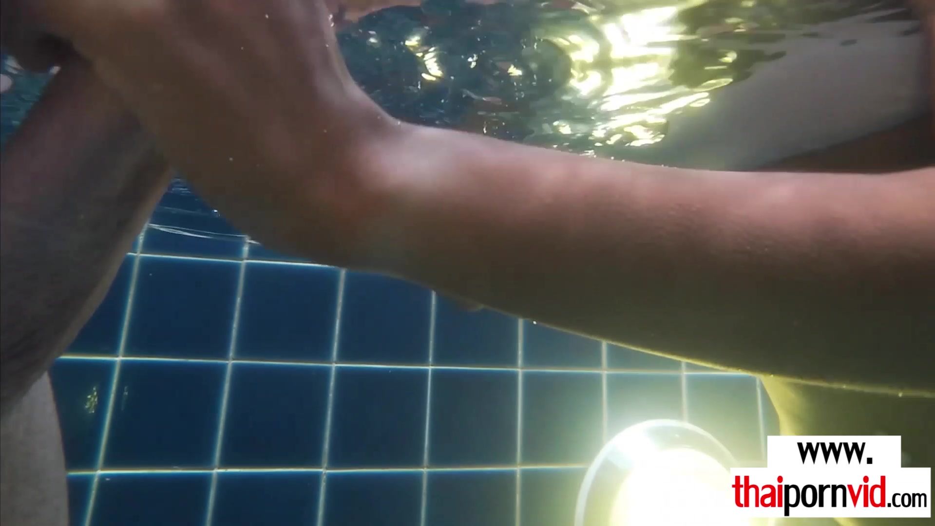 Petite amateur Thai teen Cherrry with small tits is shaking her bubble butt in the pool the she grabs her european lovers big white cock and starts sucking it under the water then the farangs is banging her exotic asian pussy in doggystyle