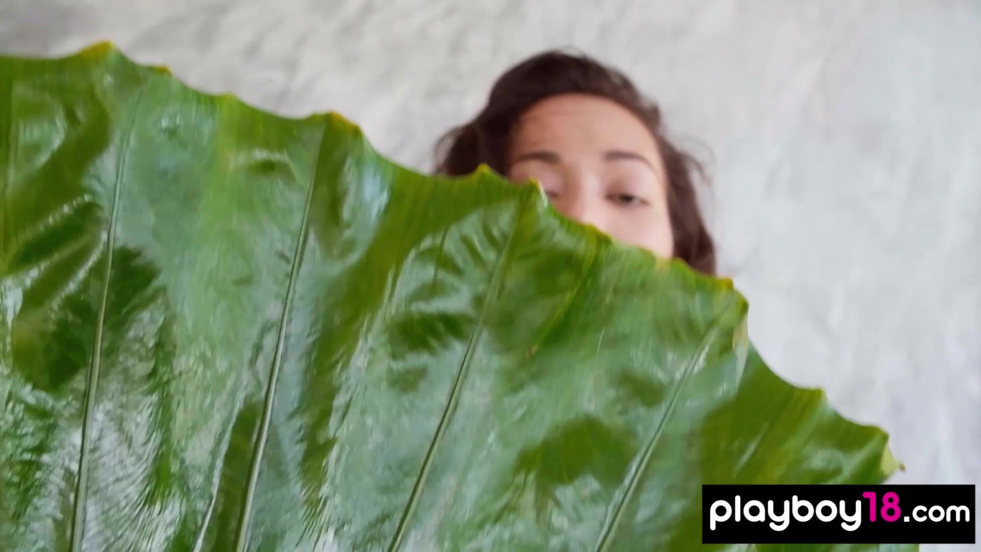 Petite brunette Filipino muse with small tits named Kit Rysha wants to show all her little secrets for Playboy So the naked diva takes a huge palm leaf and she is posing for the camera to reveal us her exotic shaved pussy