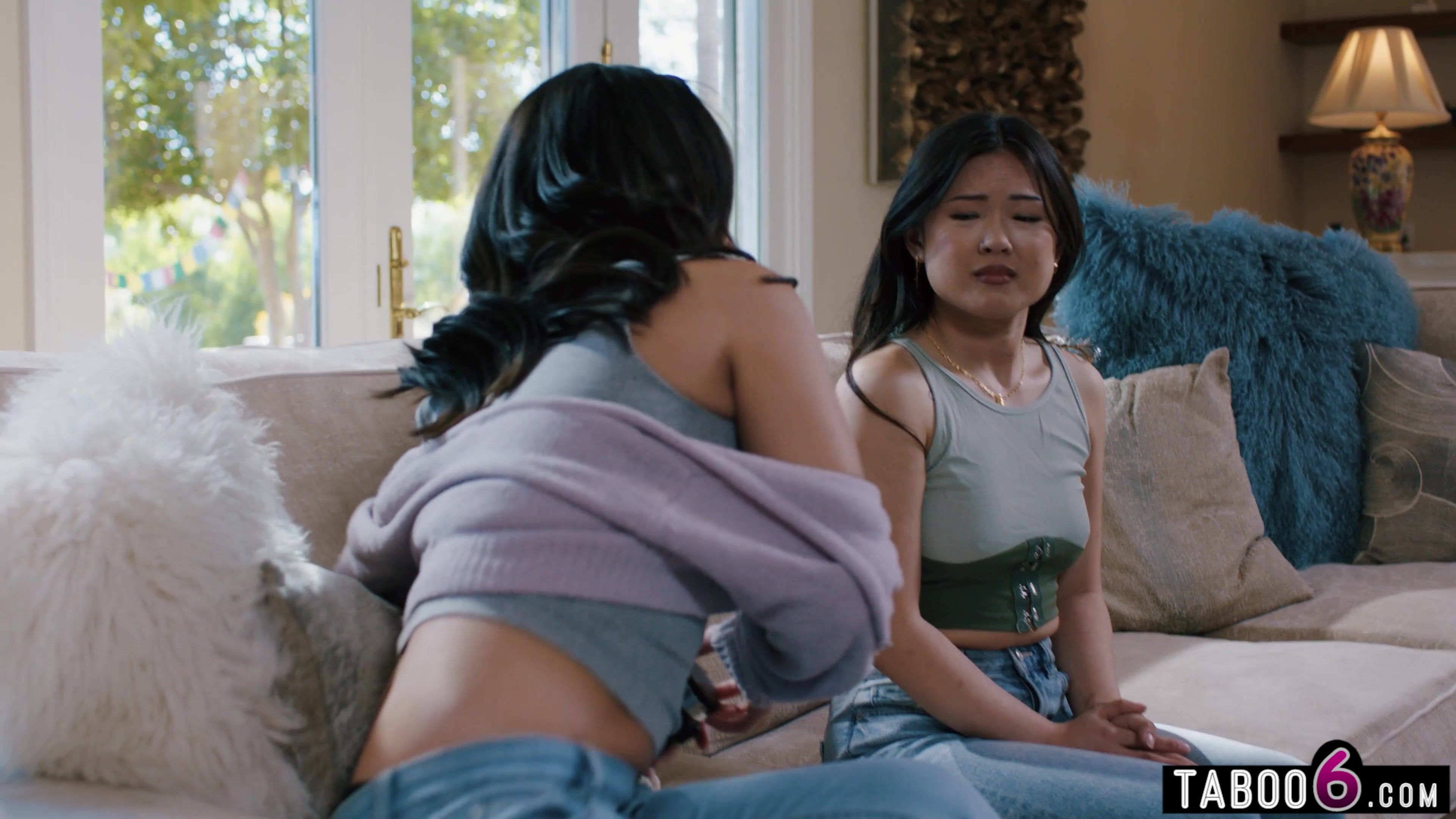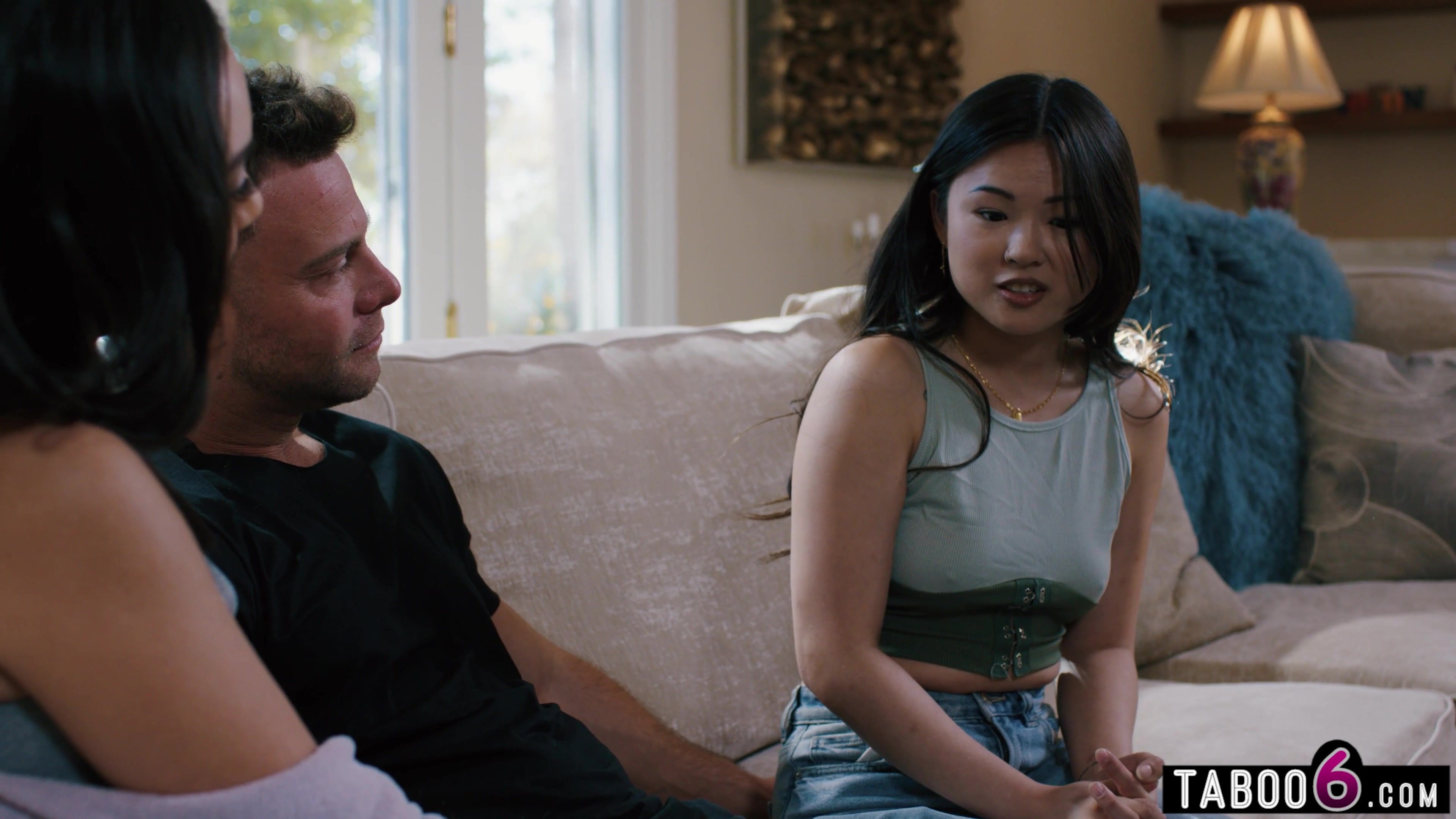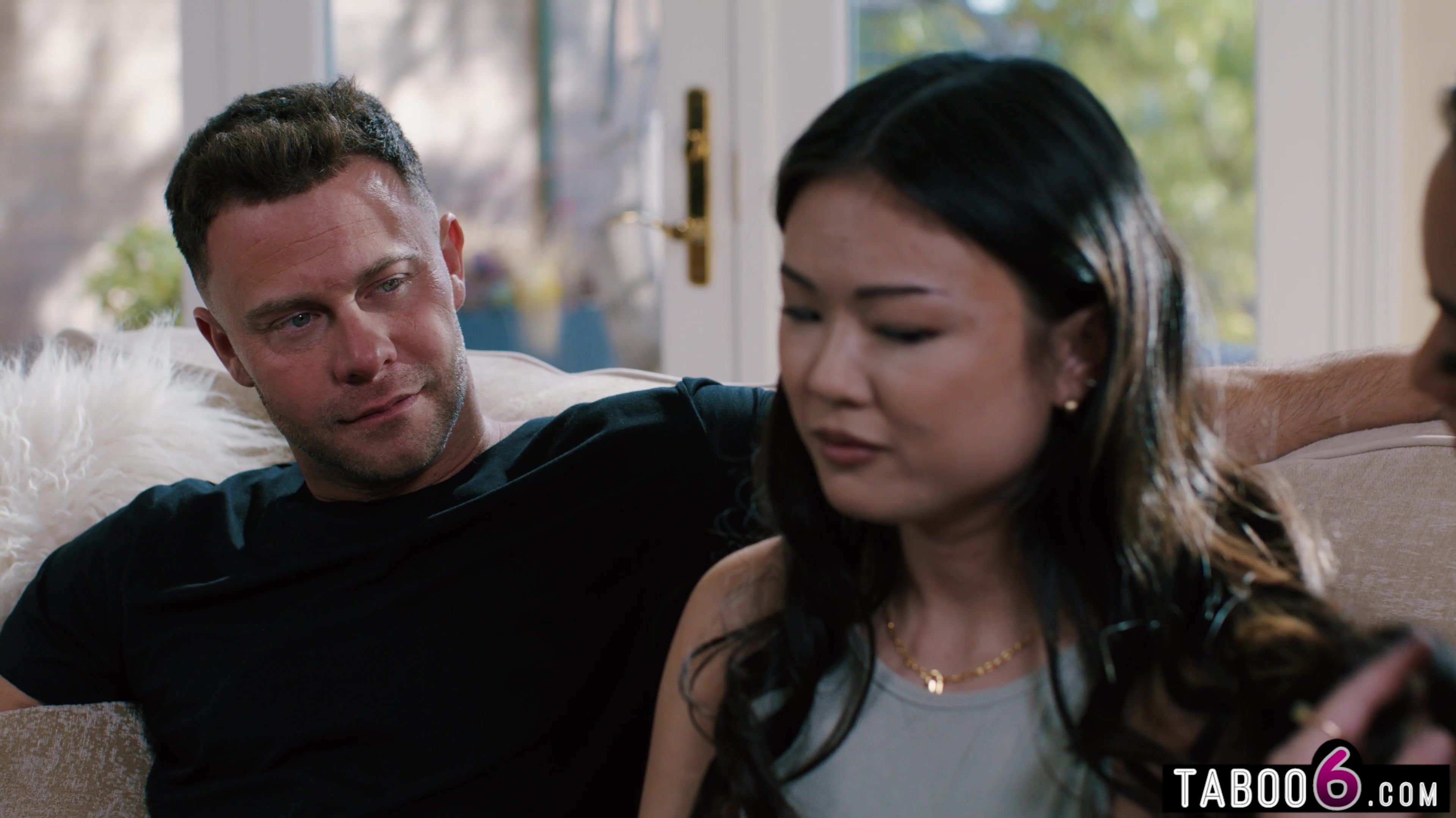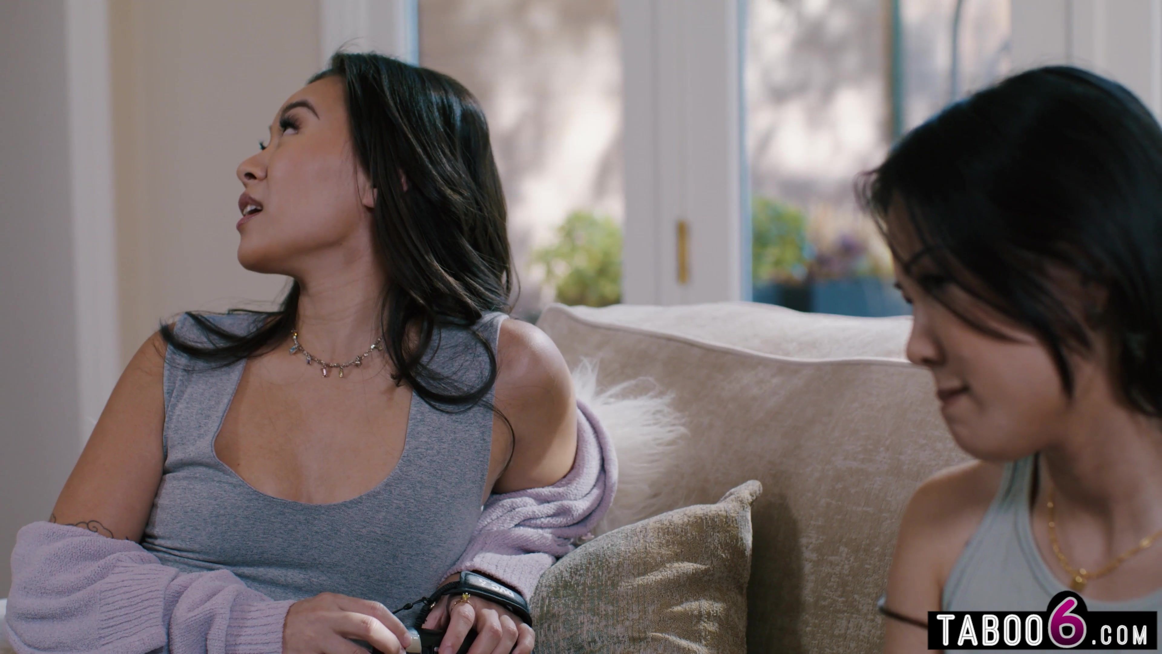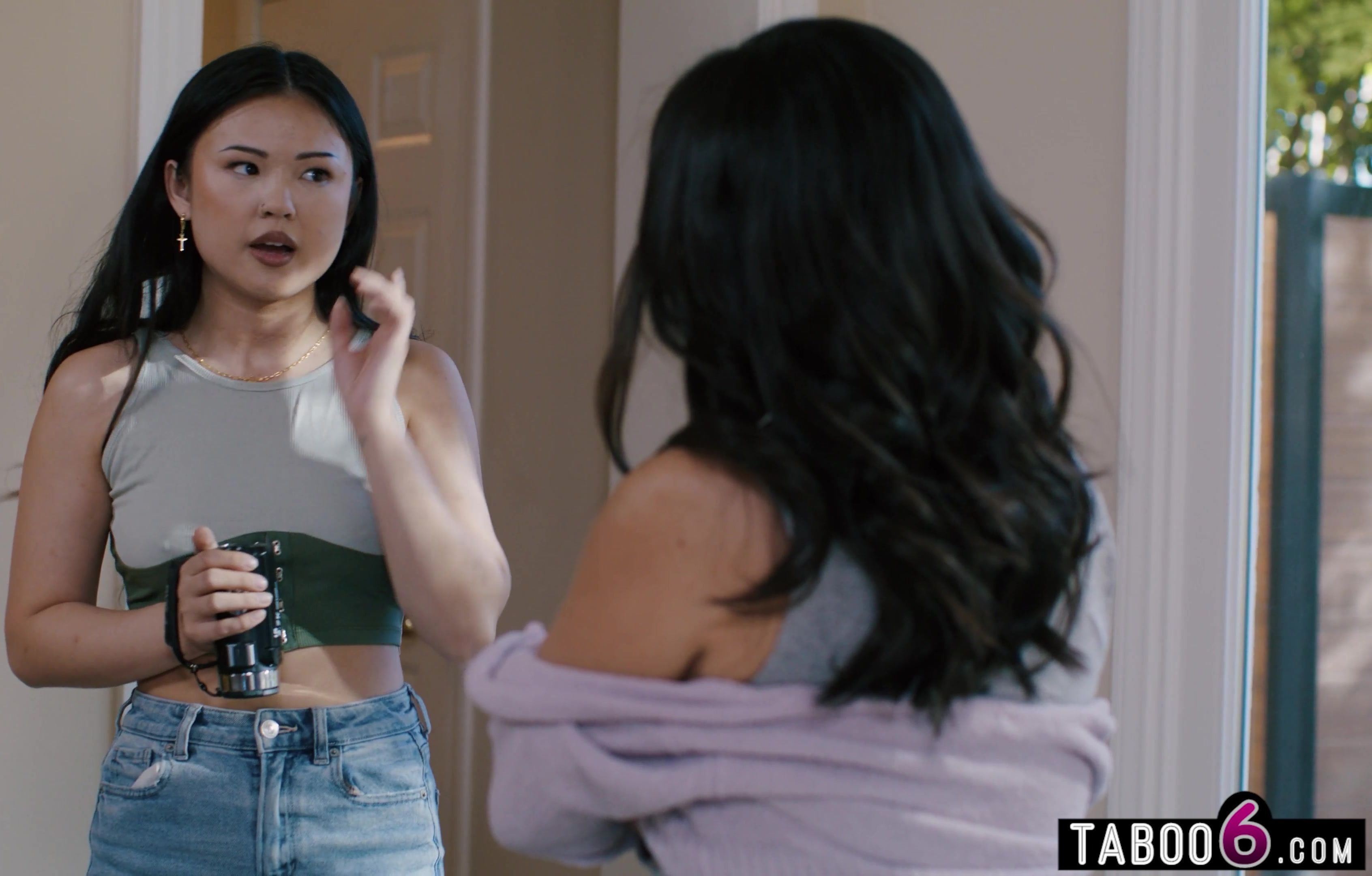 Asian Lulu Chi found footage of her friend Kimmy Kimm being dominated and confronted her about it then she called her boyfriend in! They actually planted the footage for her to see and wanted to dominate her together! She definitely had gotten curious!