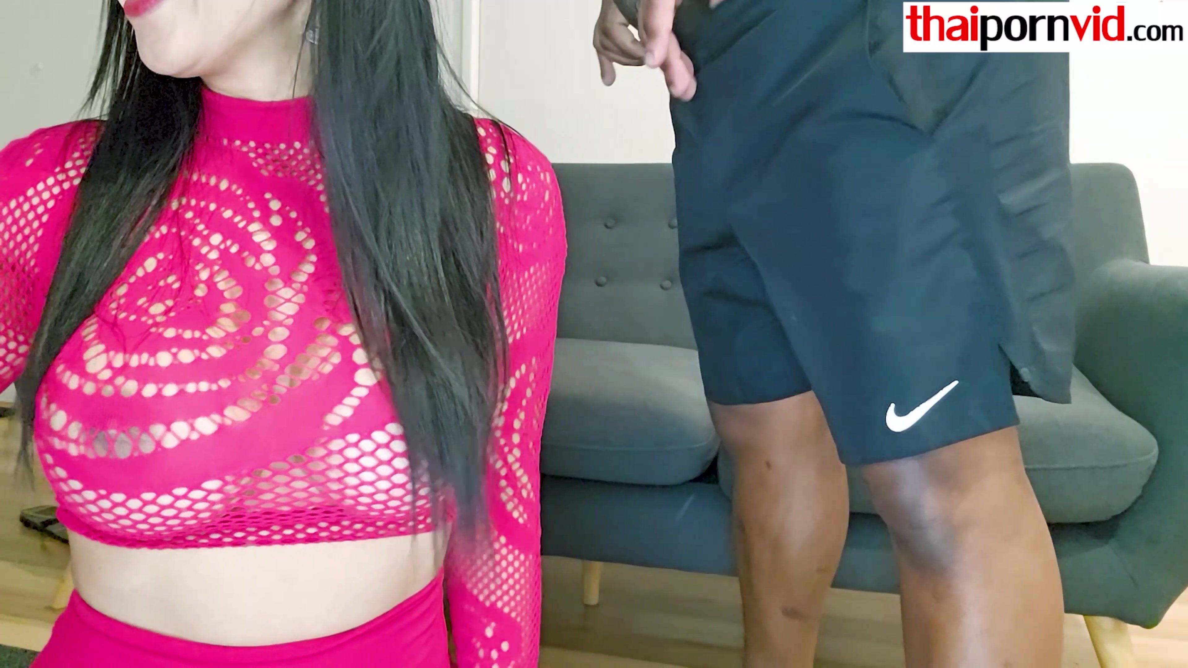 Hot amateur Thai MILF Joon Mali with big boobs in slutty lingerie is ready to feel her big black cock i her tight asian ass She gets on her knees to suck the BBC then he is anal fucking the naughty sluts bubble butt
