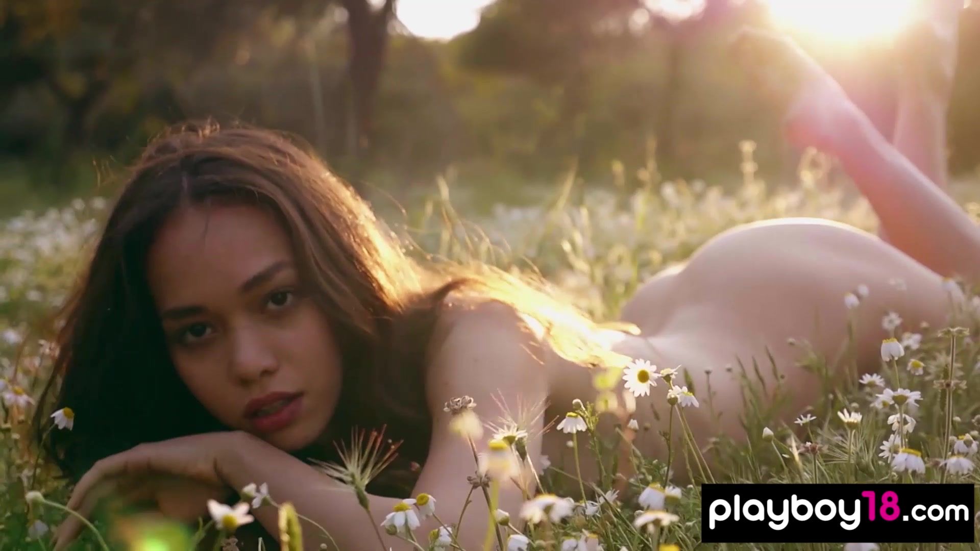 Petite Filipina babe named Kit Rysha wits small boobs loves being outside She walks at a wildflower field where she drops off her clothes She bends over and introducing her exotic asian pussy for Playboy