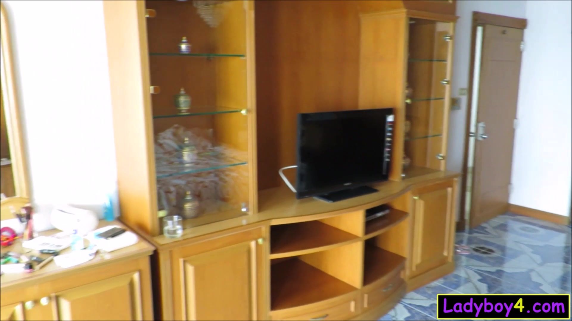 Big ass Thai ladyboy girlfriend homemade blowjob and anal doggy style fucking while he recorded everything they did together on video! He came over to her apartment and she opened the door in black lingerie ready to suck and get fucked!