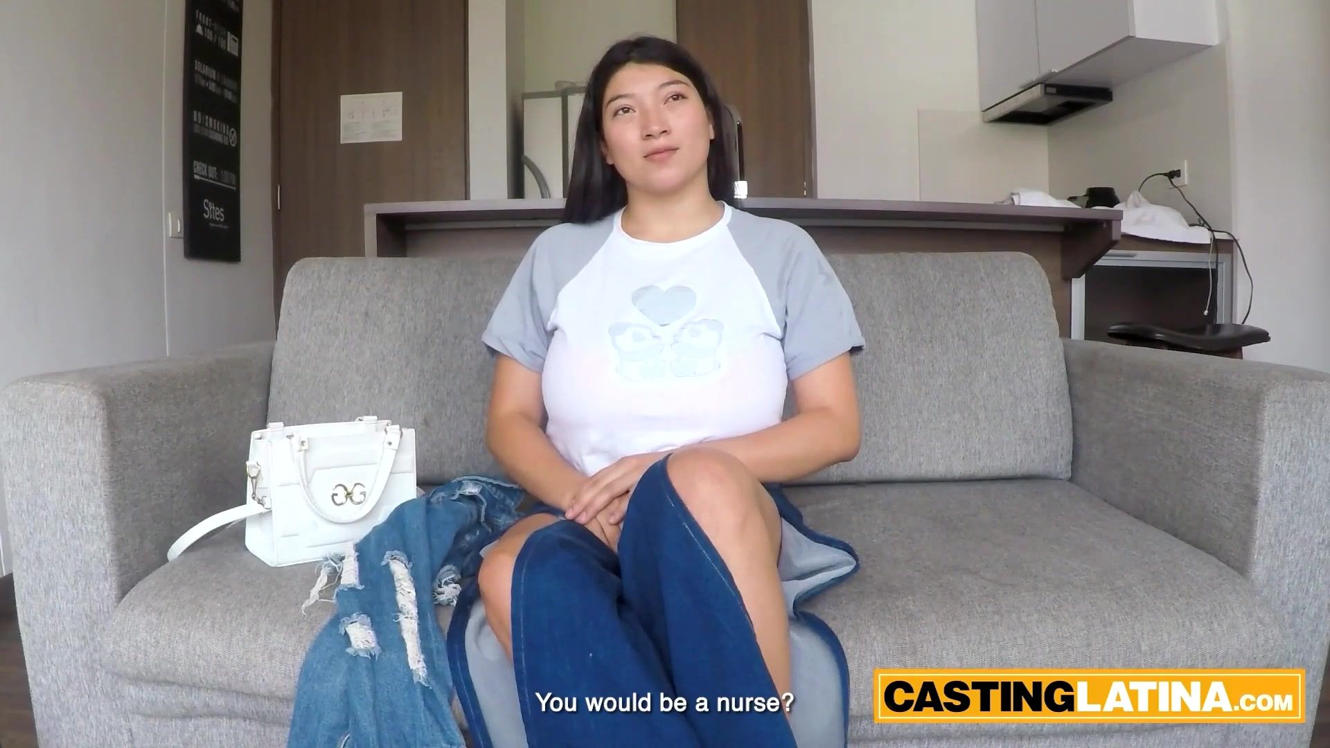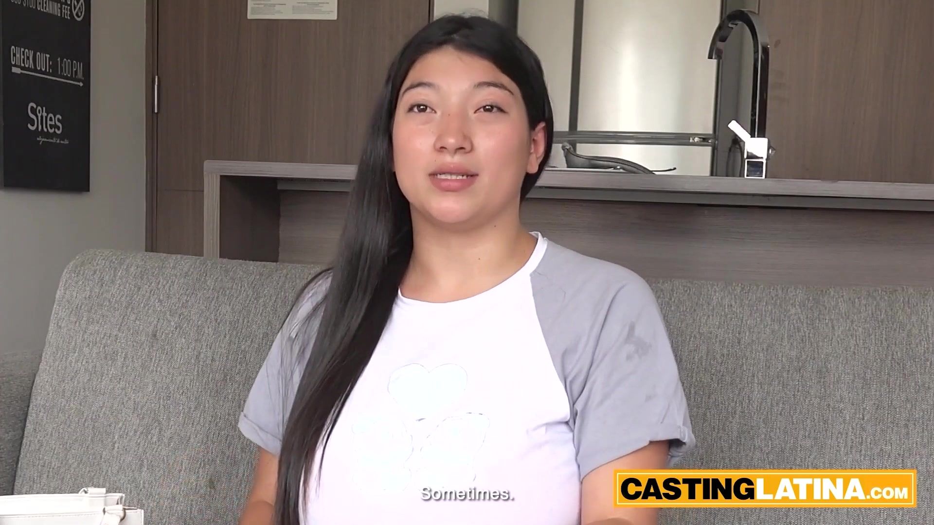 Huge boobs Japanese latina MILF on casting but being too old for modelling but the producer had a job for her either way! A blow job where he sticks his huge cock deep down her throat which made her gag on his big dick on video!