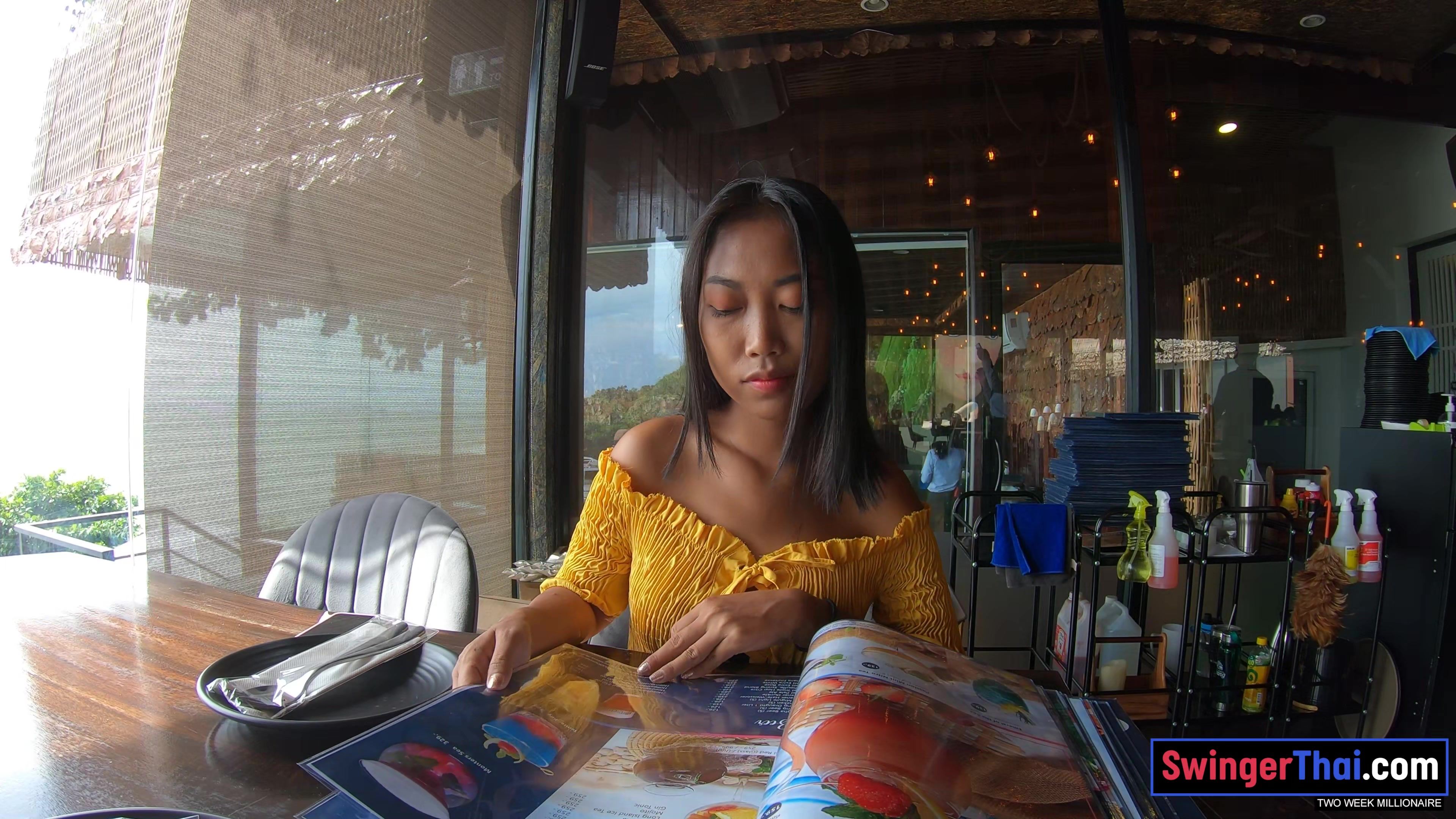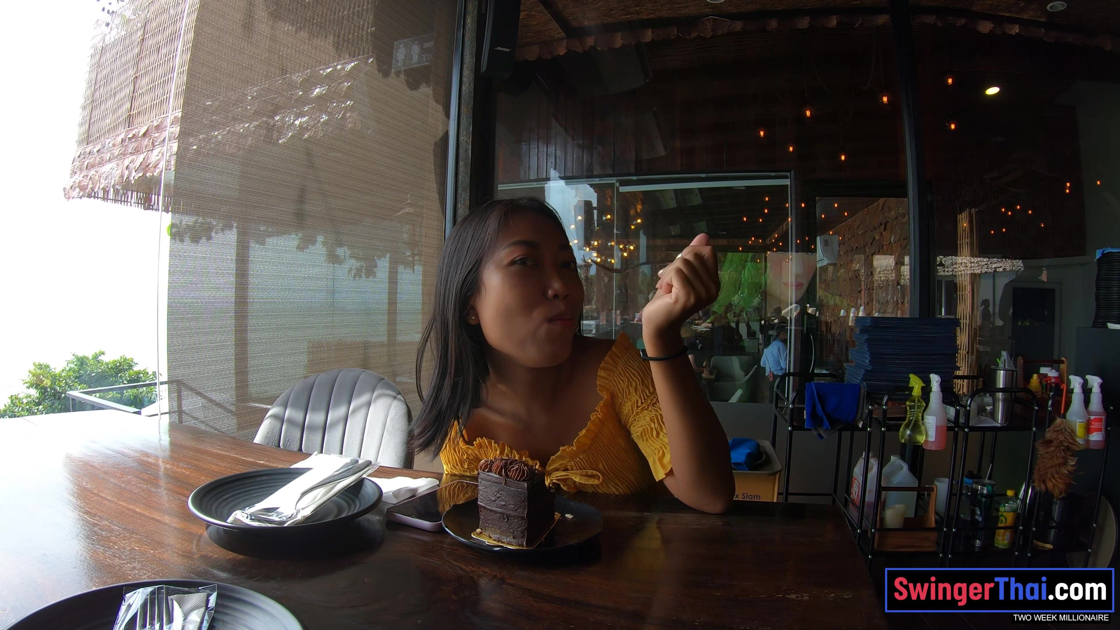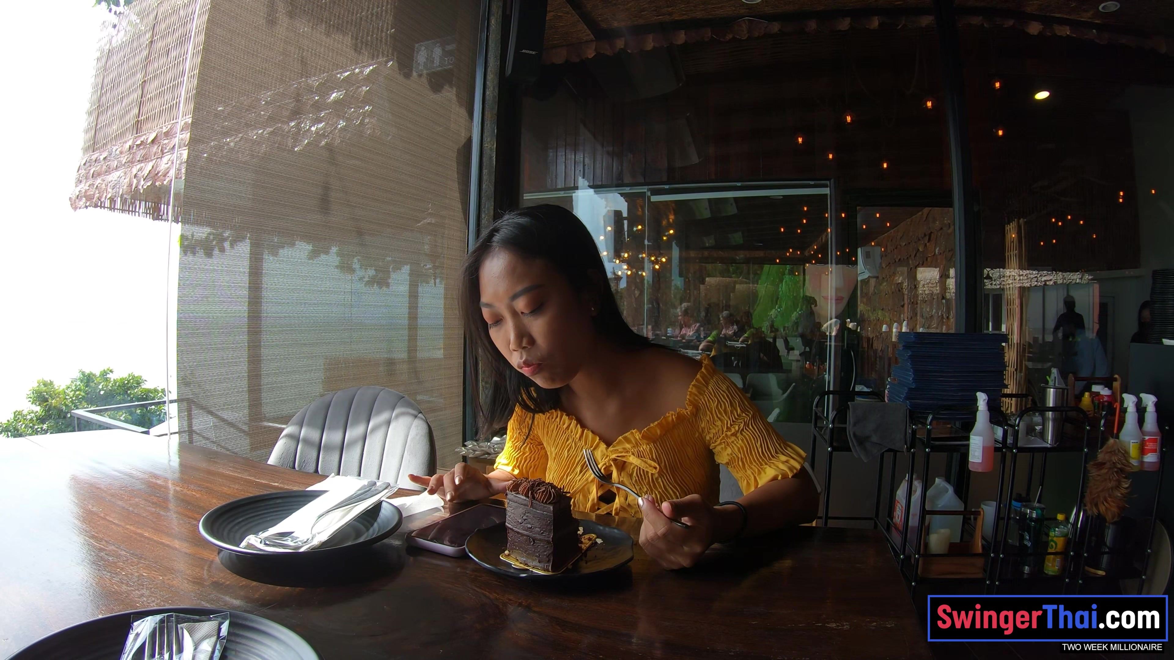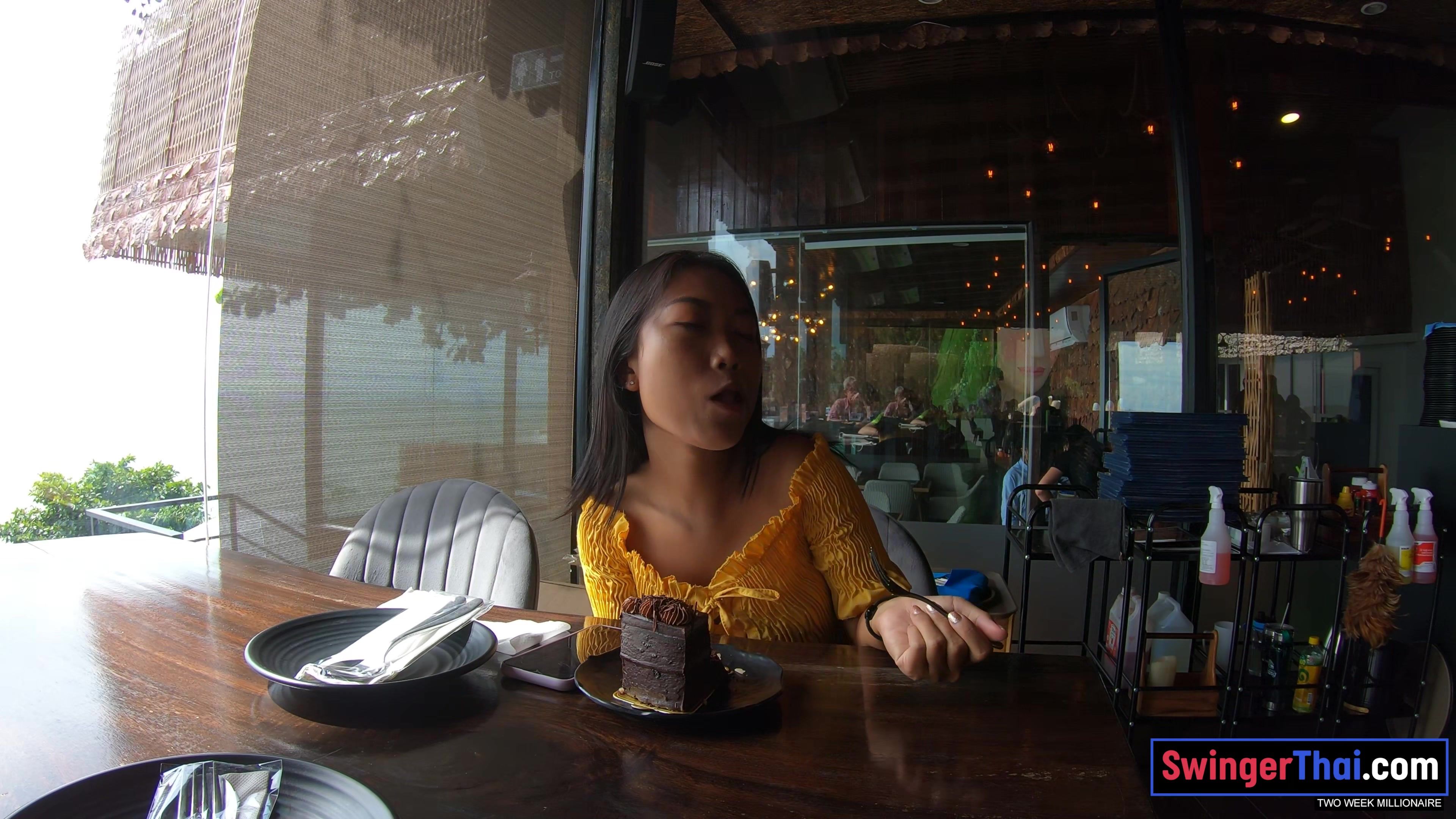 Teen GF from Thailand dirty sex at home with her big dick white boyfriend after eating chocolate cake in a restaurant! She was his two week millionaire girlfriend as soon as he landed there and did not leave his side during his whole holiday!