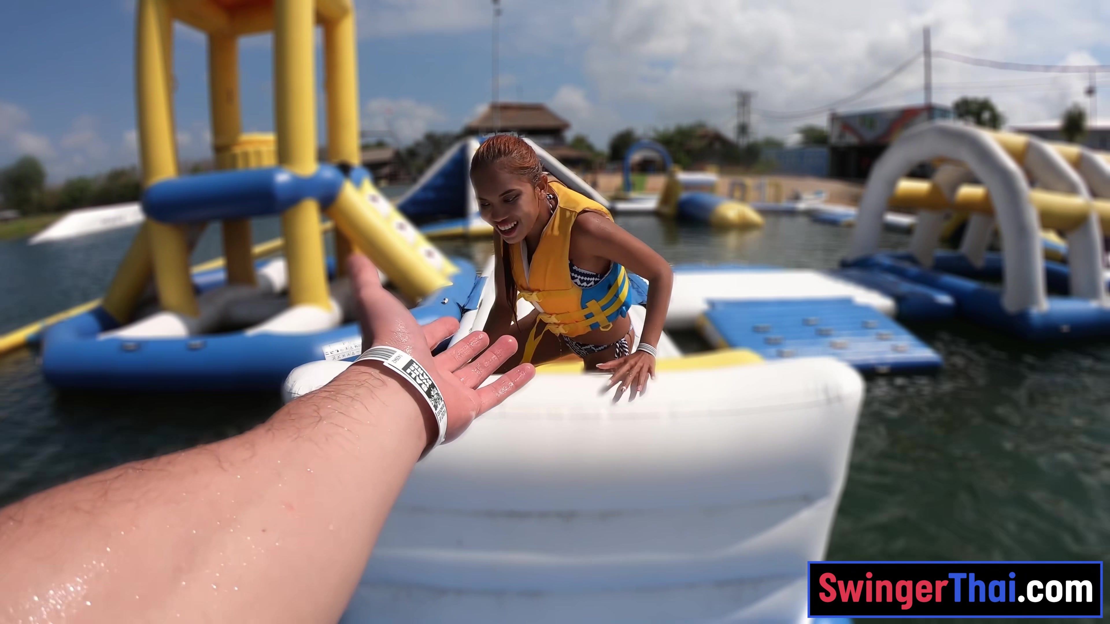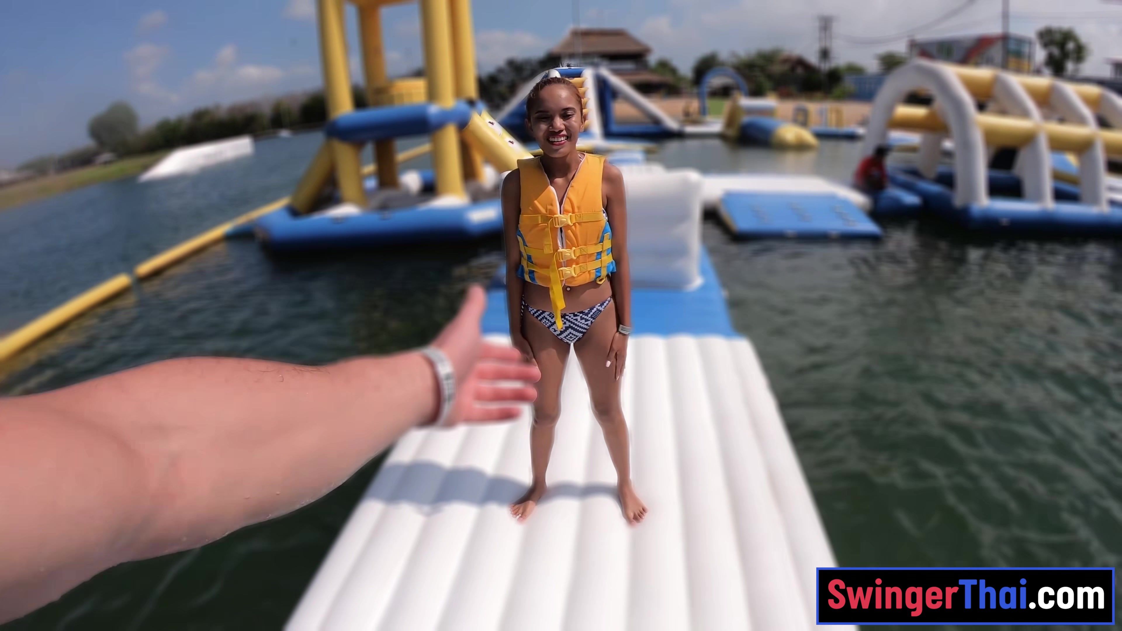Perfect ass Thai amateur GF water park fun and hot sex at home