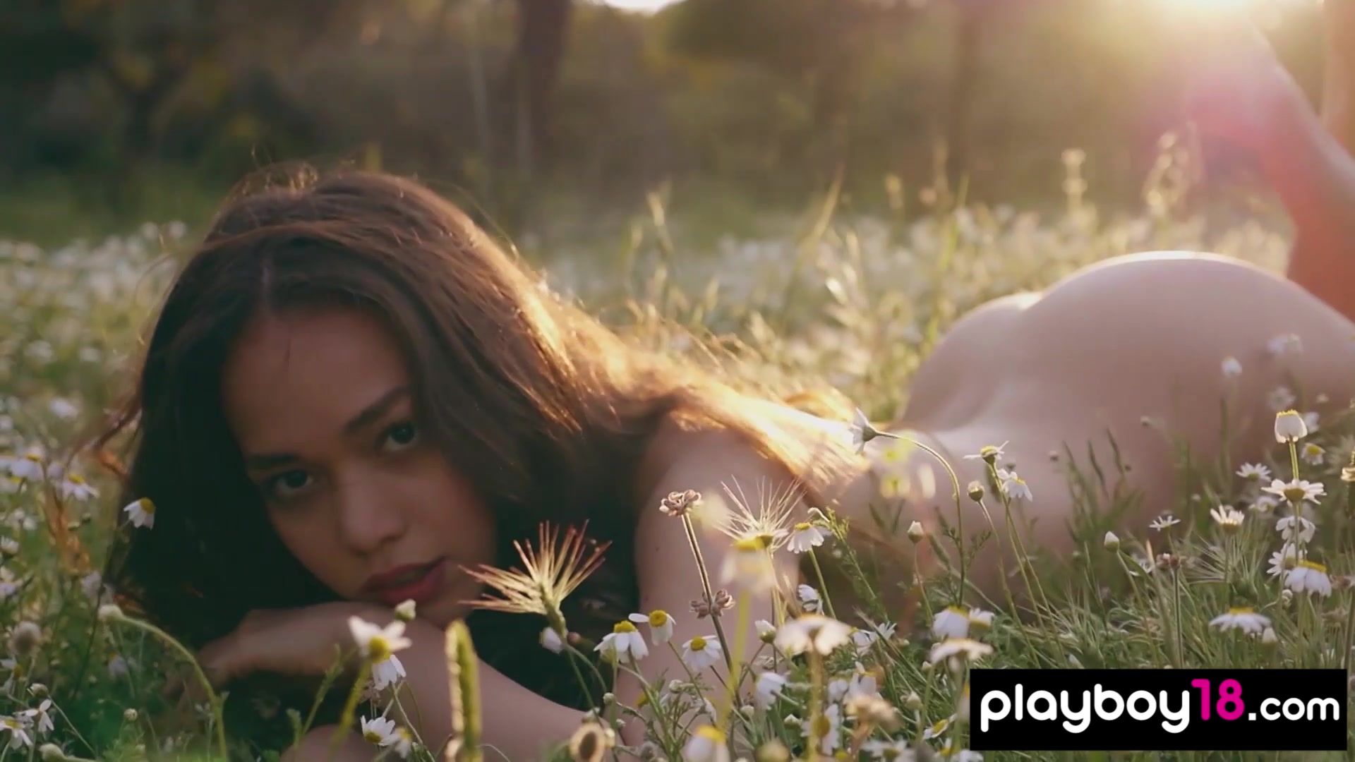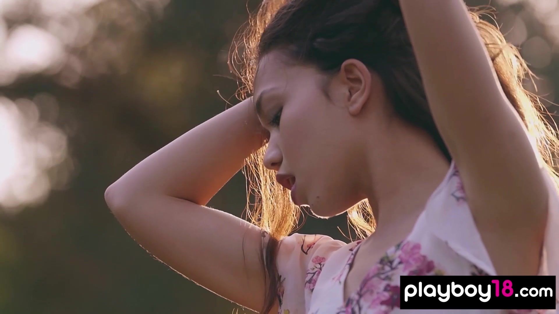 Petite Filipino teen named Kit Rysha with small boobs is walking on a wildflower field She takes off her white floral dress during her hair blowing in the wind then she in troducing her shaved asian pussy for Playboy