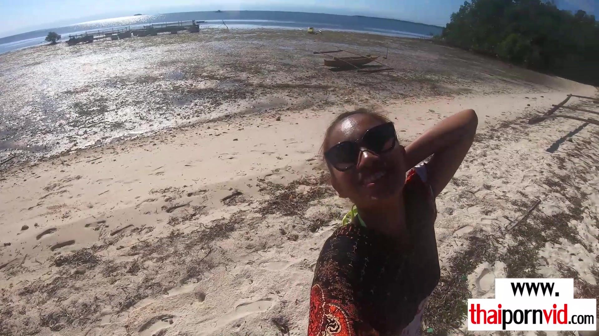 European dude takes off his pants at the beach and his petite amateur Thai teen GF Cherry with small tits grabs his big white cock to give him a blowjob then she bends over and he is fucking her hungry asian pussy in doggystyle outdoor