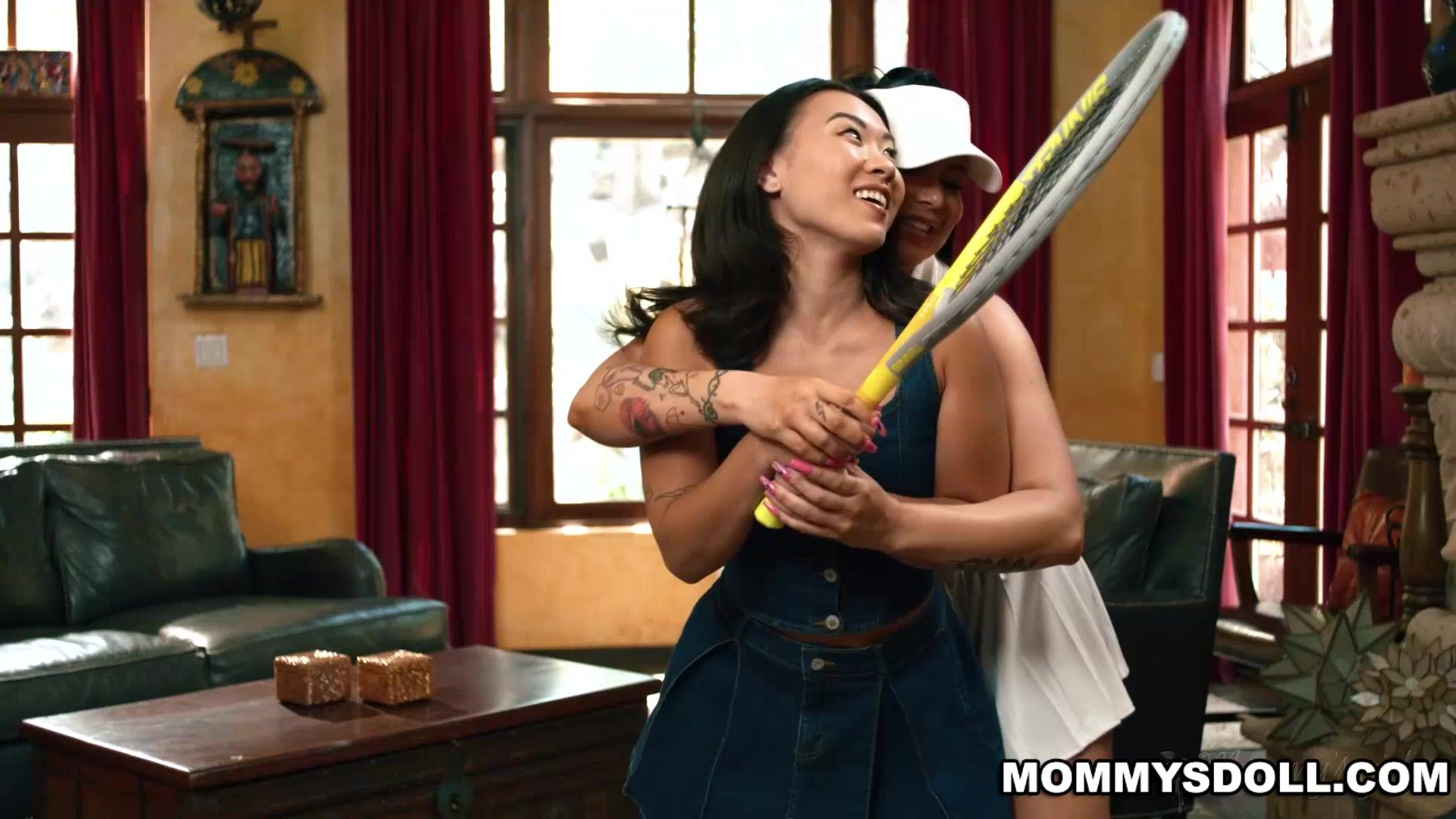Kimmy spots how cute Romi looks in her tennis outfit Before leaving Kimmy asks Romi to demonstrate a few swings which gives Kimmy plenty of sexy views of Romis body Romi eventually catches on to Kimmys game and calls her out on it