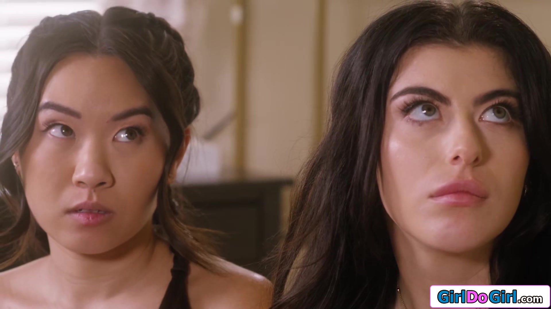 Babysitters Kimmy Kimm and Gal Ritchie caught fooling around by their boss Live Revamped.The latina milf spanks the teens and watches them lick while she puts her strapon on.The small tits asian and her gf both gets fucked by the dominant lesbian