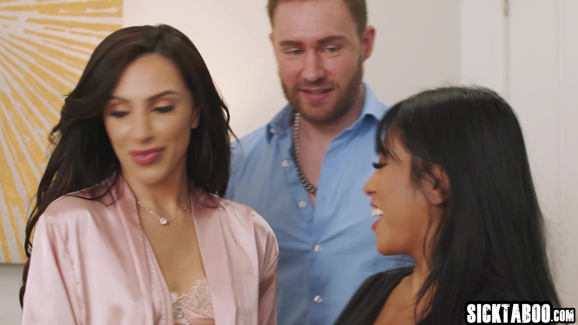 Birthday gift for sexy wifes husband is sexy big tits Asian MILF Ember Snow so hot Latina enjoyed lesbian sex before threesome sex Latina and big tits Asian gave a perfect blowjob after lesbian sex After blowjob babes enjoyed hardcore sex