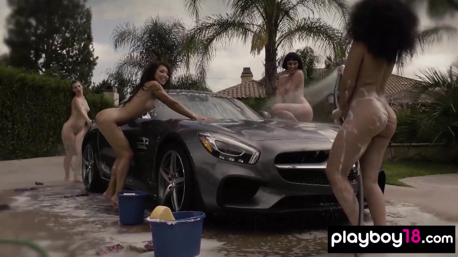 Petite MILF Bobbi Dean with small tits calls over her busty asian neighbor Ayumi Anime and her teen GFs Ella Nova and Olive Glass to wash a car and get some cash The exotic babe has a naughty idea so they drop off their tiny bikinis to get more money
