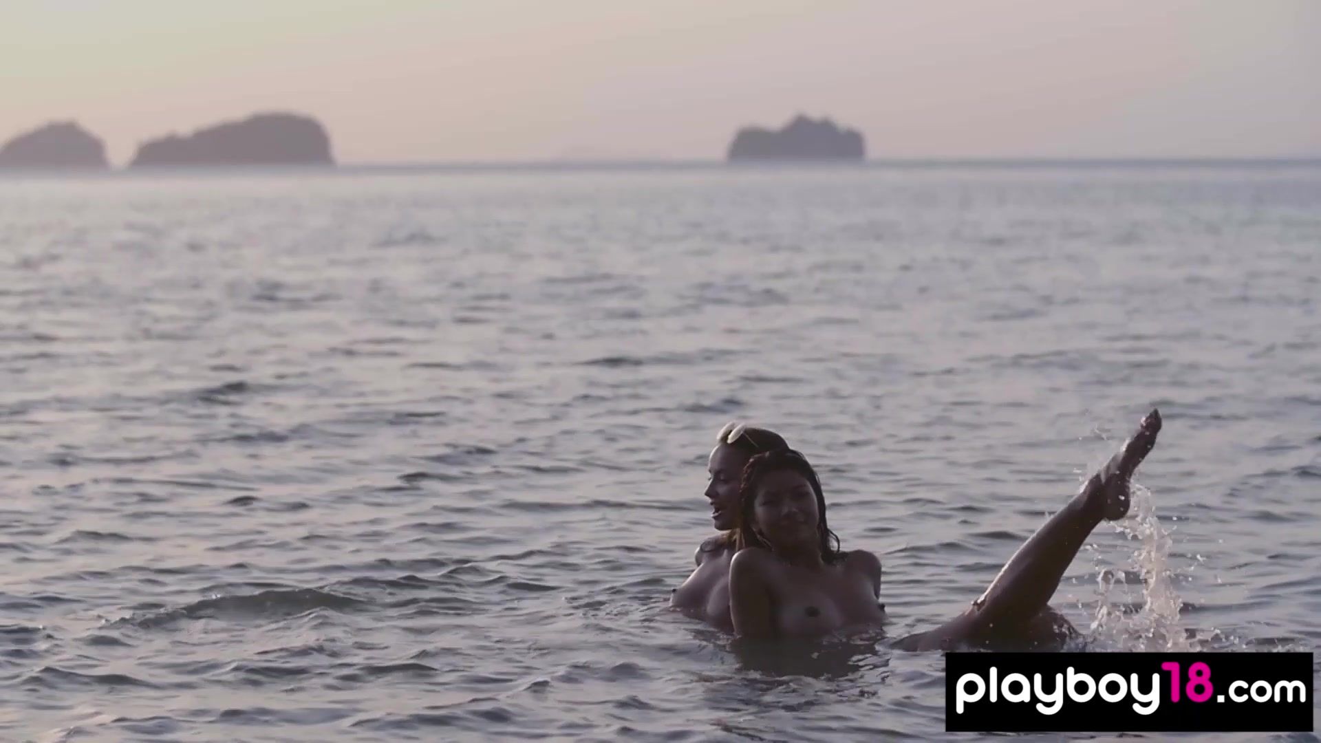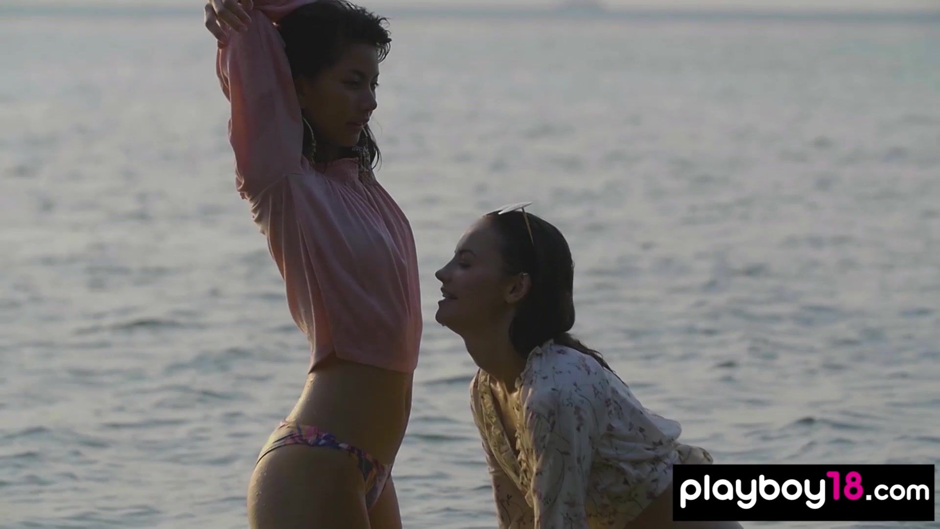 Petite lesbian asian teen Cara Pin with small tits and her skinny Czech GF Elilith Noir are ejoying the summer at the beach They are taking off their tiny bikinis and playing in the ocean then the snmiling nude babes are watching the sunset