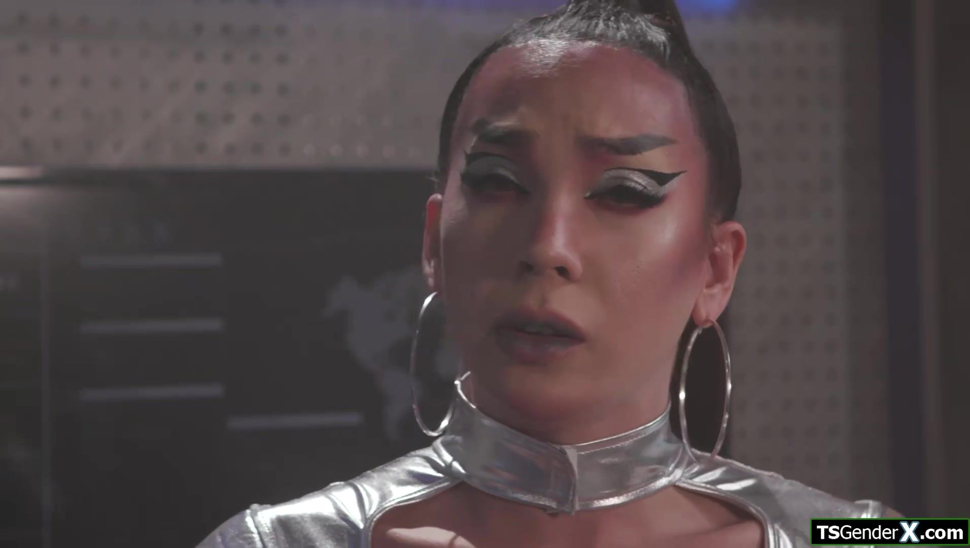 After being frozen for 500 years asian trans alien Kasey Kei is horny as fuck.The shemale gives a double handjob and is rimmed.The small tits tranny is deepthroated and sucks the space captains big cock.The brunette tgirl bareback anal rides