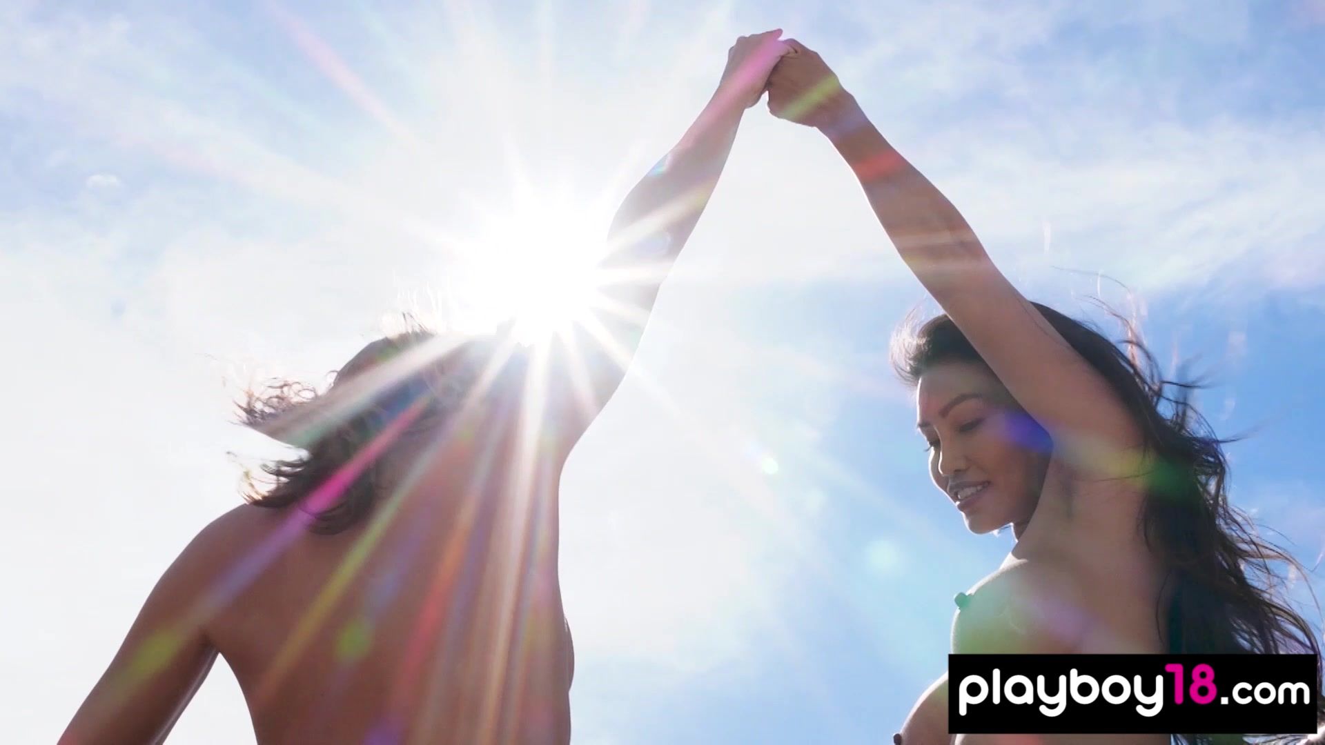 Bombastic asian MILF Viviane Leigh with big tits and her lesbian teen GF Miluniel Louis are stopping at an abandoned place and slips out of their clothes to take sunbath The smiling nude babes are posing on the hood and showing us their fresh pussies
