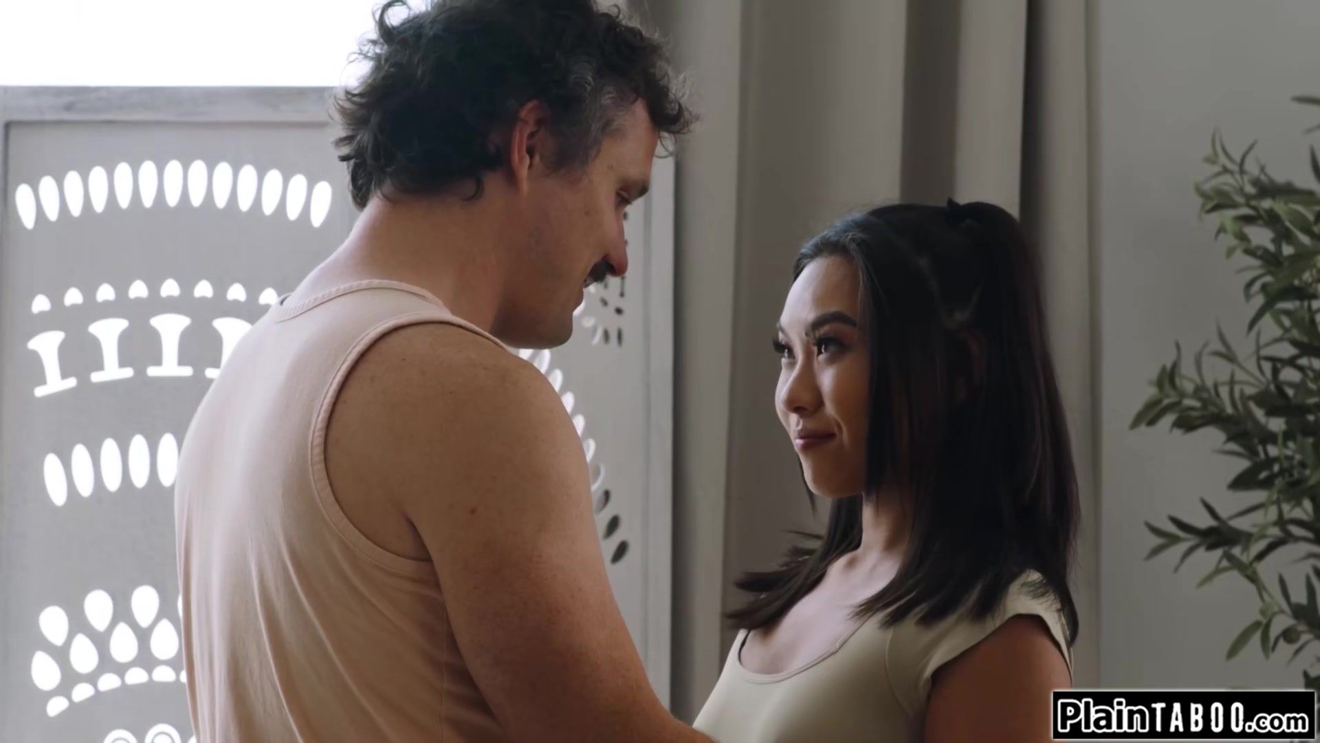 Petite small tits Asian Kimmy Kimm wants to break up with the guy.She feels guilty and agrees to having sex.But is that a smart thing to do?They kiss and he sucks on her small boobs.She deepthroats his big cock and after they fucked its time to tell