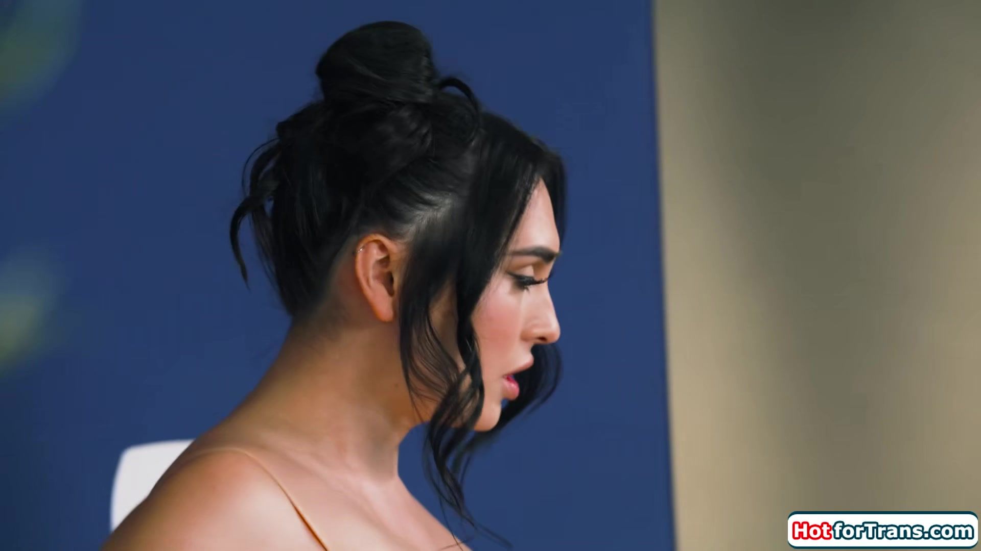 Oriental busty tgirl Ember Fiera and big tits asian Ember Snow look super sexy in their dresses.The shemale gets her uncut tranny dick jerked while being boobsucked.The petite babe deepthroats and rims the trans.The transsexual licks and fucks pussy