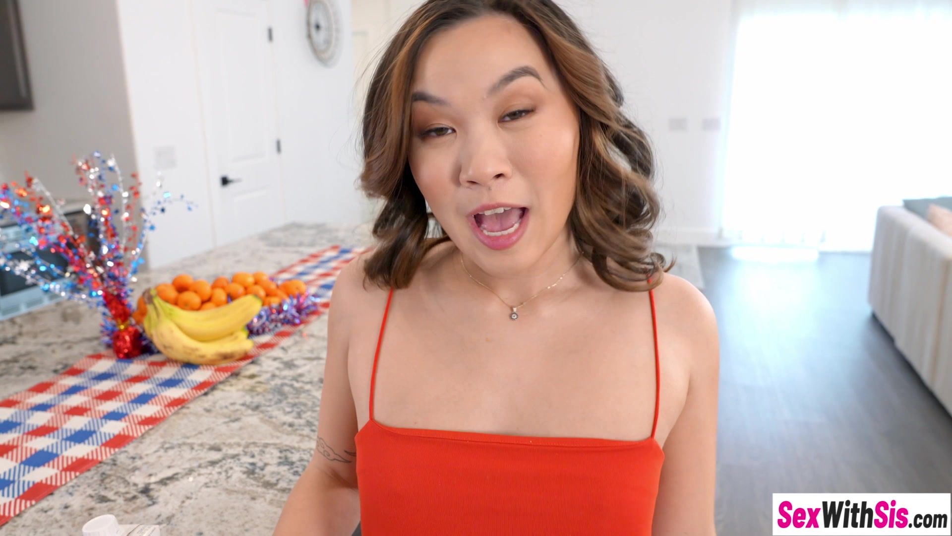 Petite and horny Asian stepsister Kimmy Kimm serving tight pussy for lunch