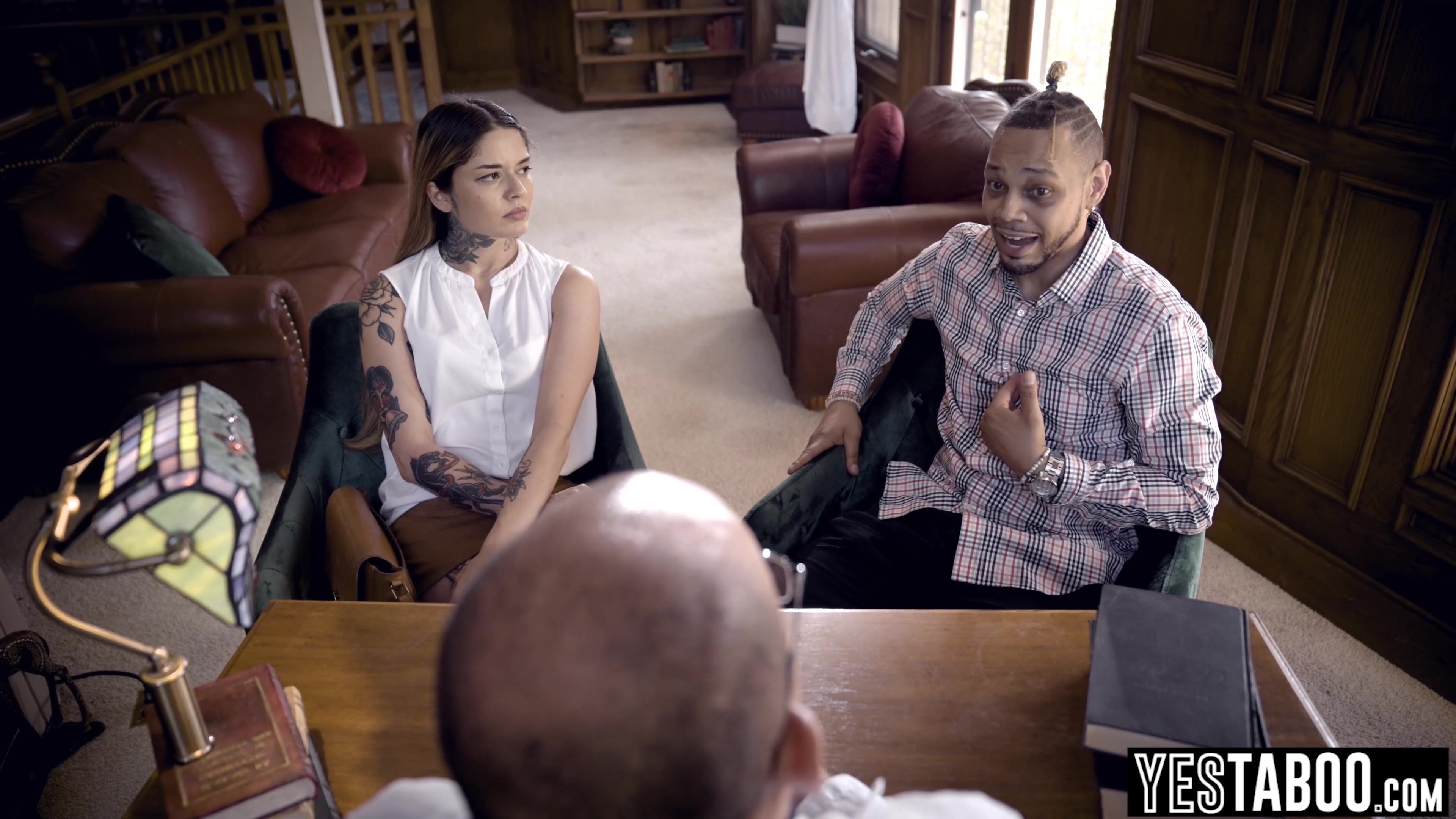 Petite tattooed Asian MILF Vanessa Vega went to her doctor to consult about her health issues but the horny doctor made her strip in front of him and get her hairy pussy eaten out by another patient of his before the big dick stud gets to railing her hard