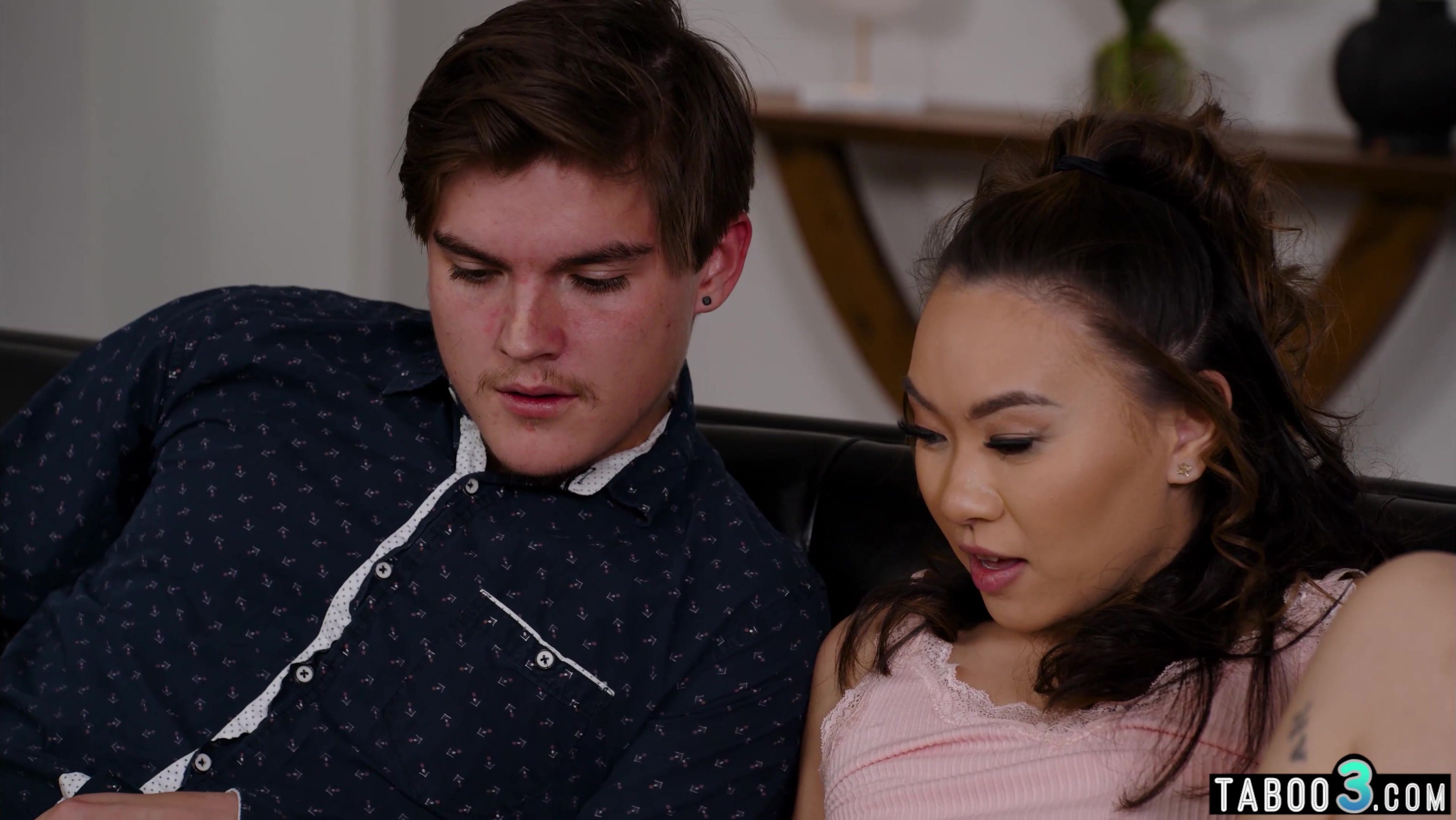 Dude notices that his petite asian GF Kimmy Kimm with small tits is masturbating on the couch He kisses her and starts licking and fingering her exotic pussy then he gets a deepthroat blowjob and fucking her juicy hole hard