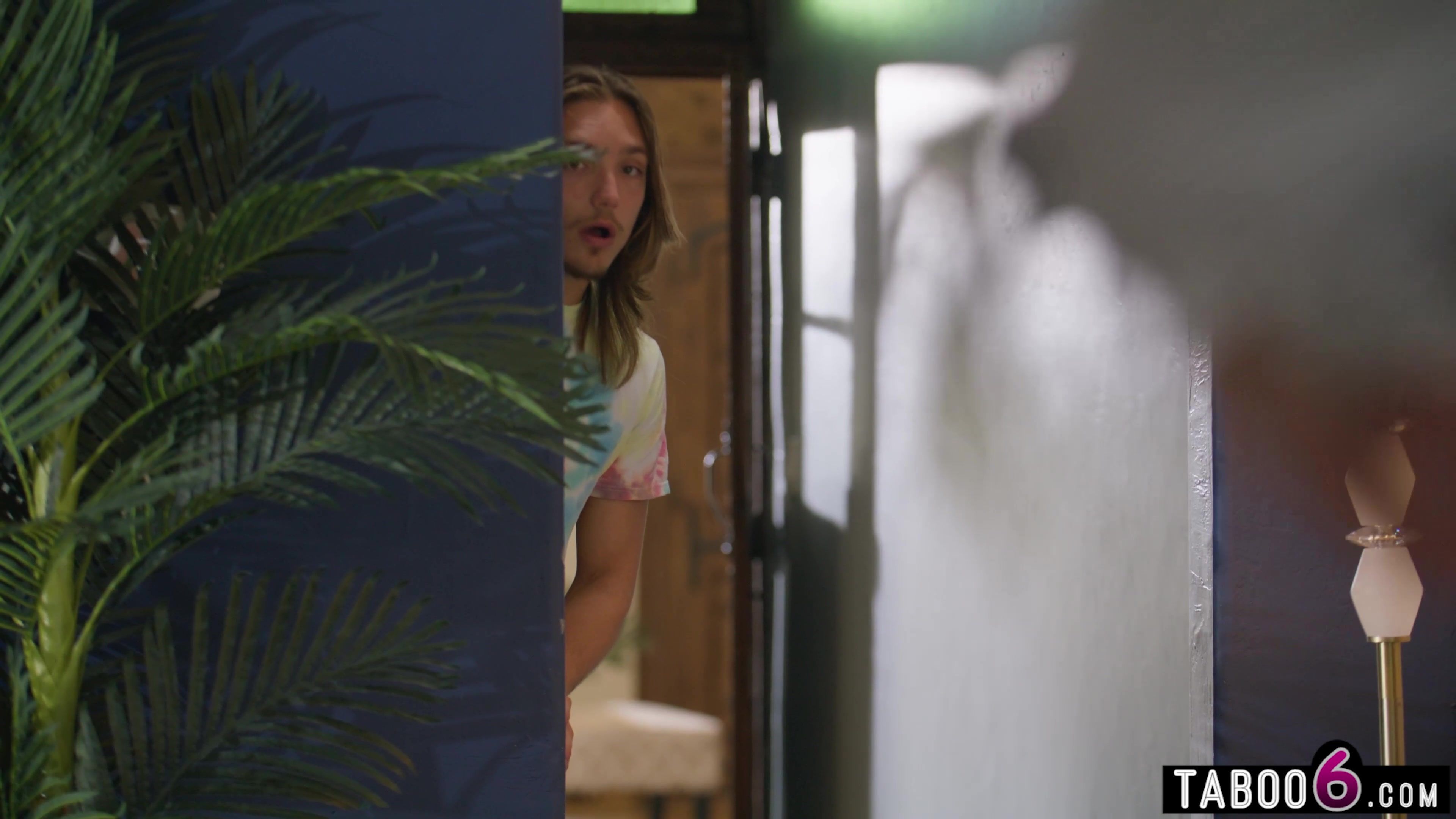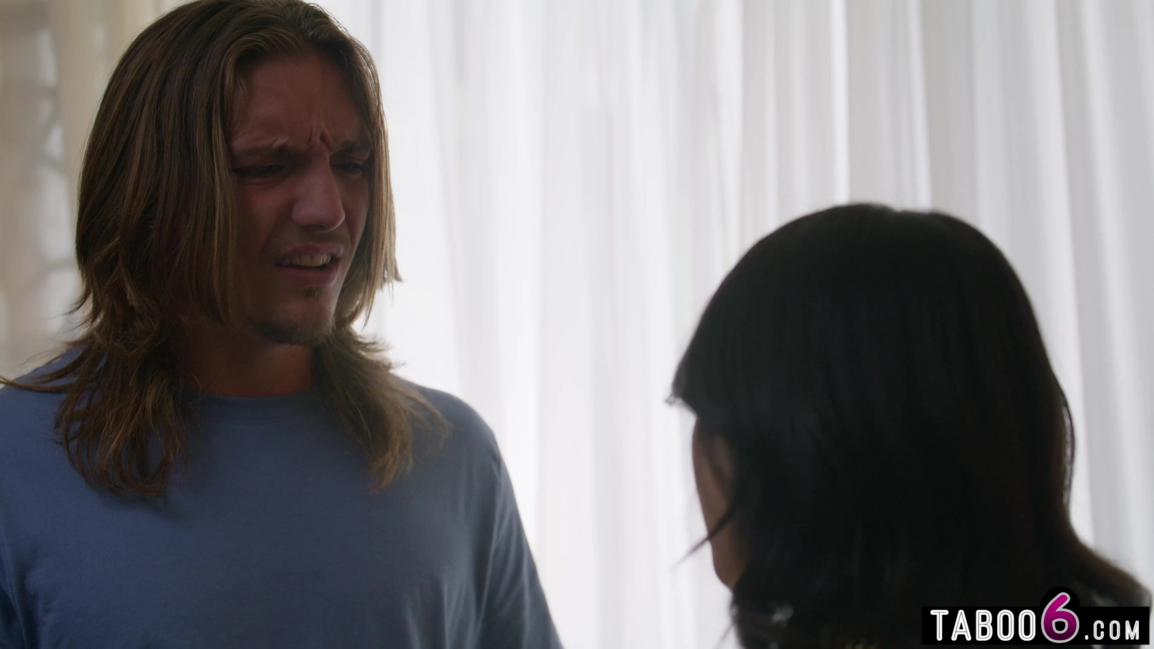 Chinese teen stepsister catches stepbro perving on MILF stepmom
