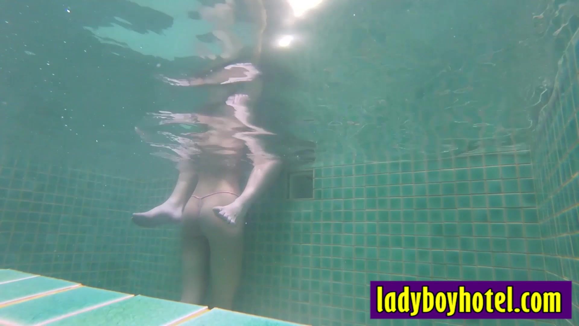 White client enjoyed blowjob in the pool by horny big dick Asian shemale