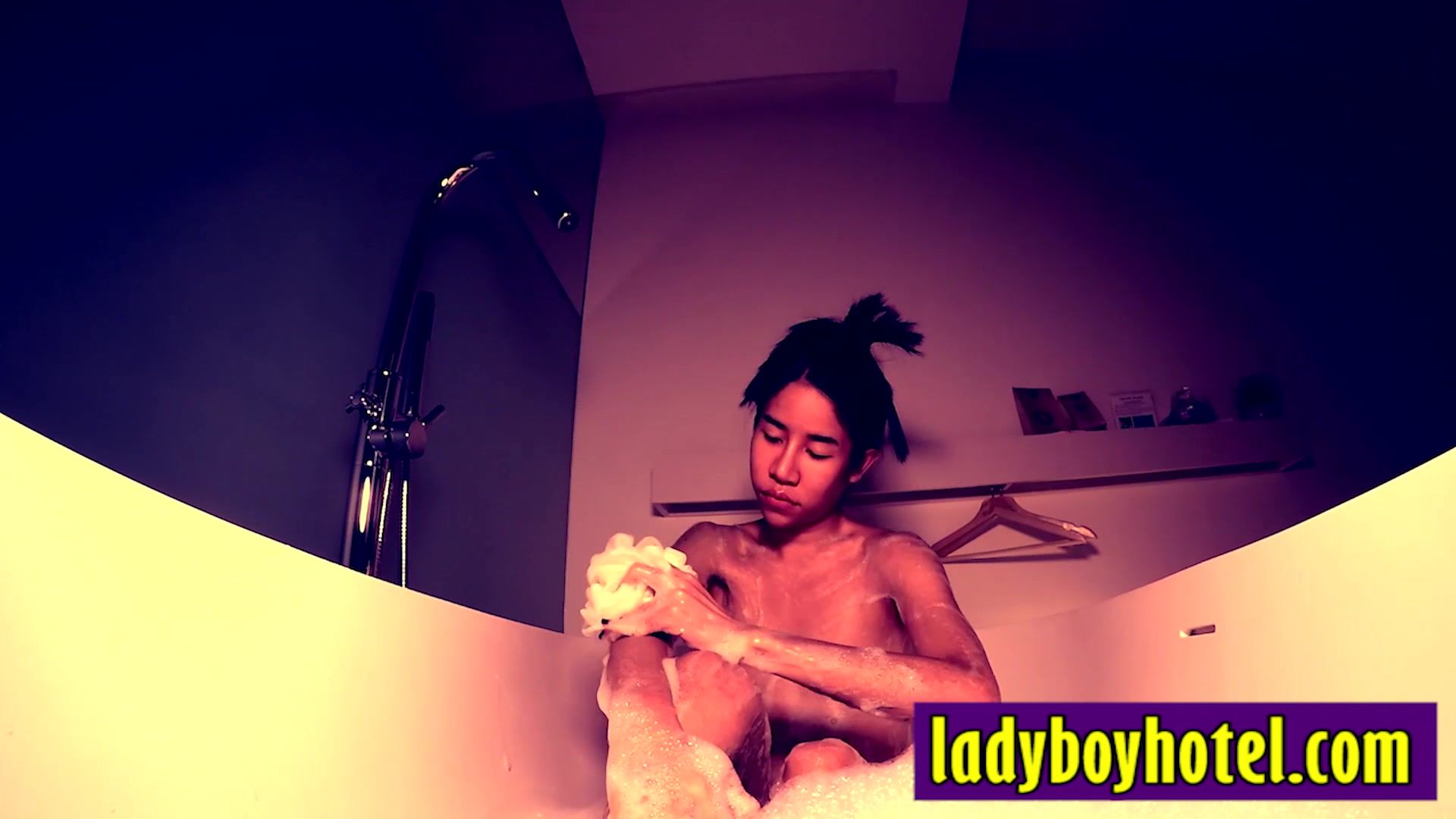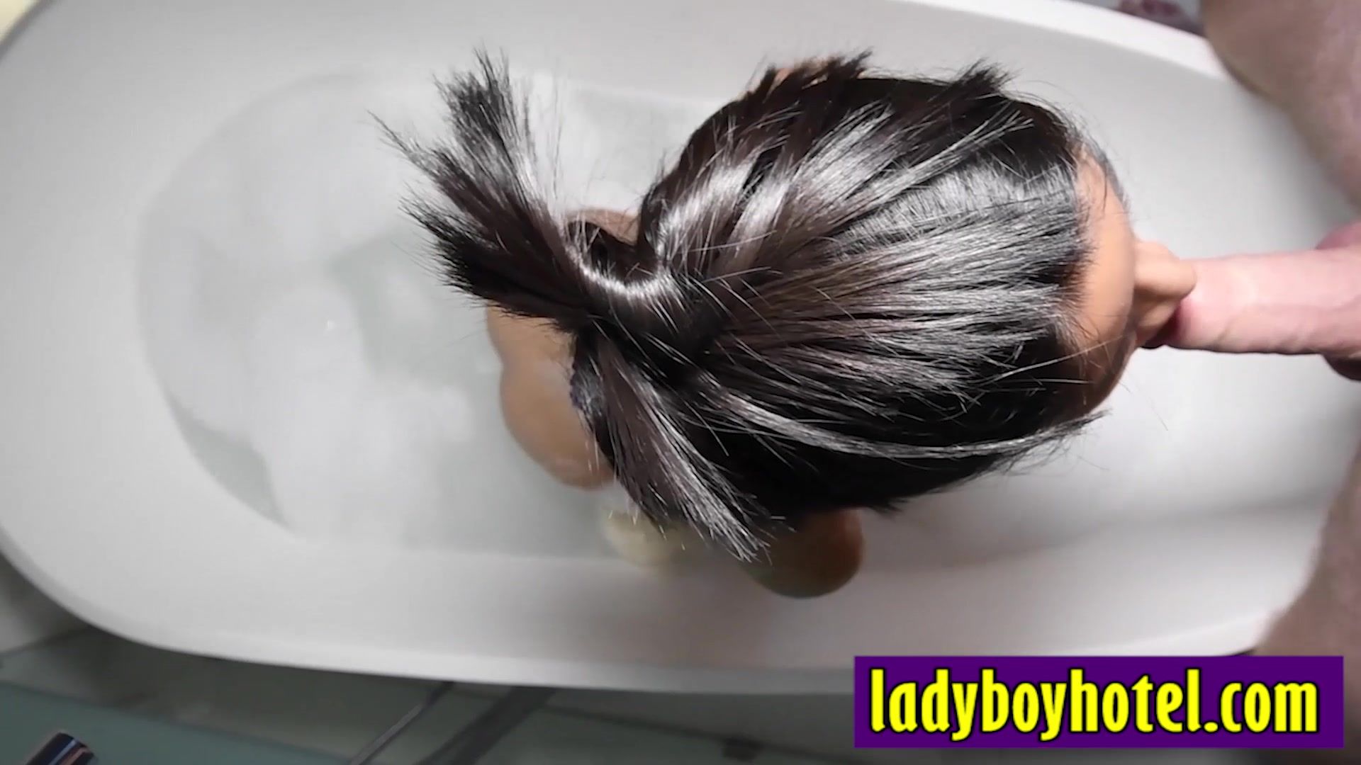 Horny Asian shemale slut Kwan enjoyed hot bath before giving a perfect blowjob to big dick white tourist Small tits tranny grabbed big white dick and started sucking it After posing femboy gave an amazing blowjob