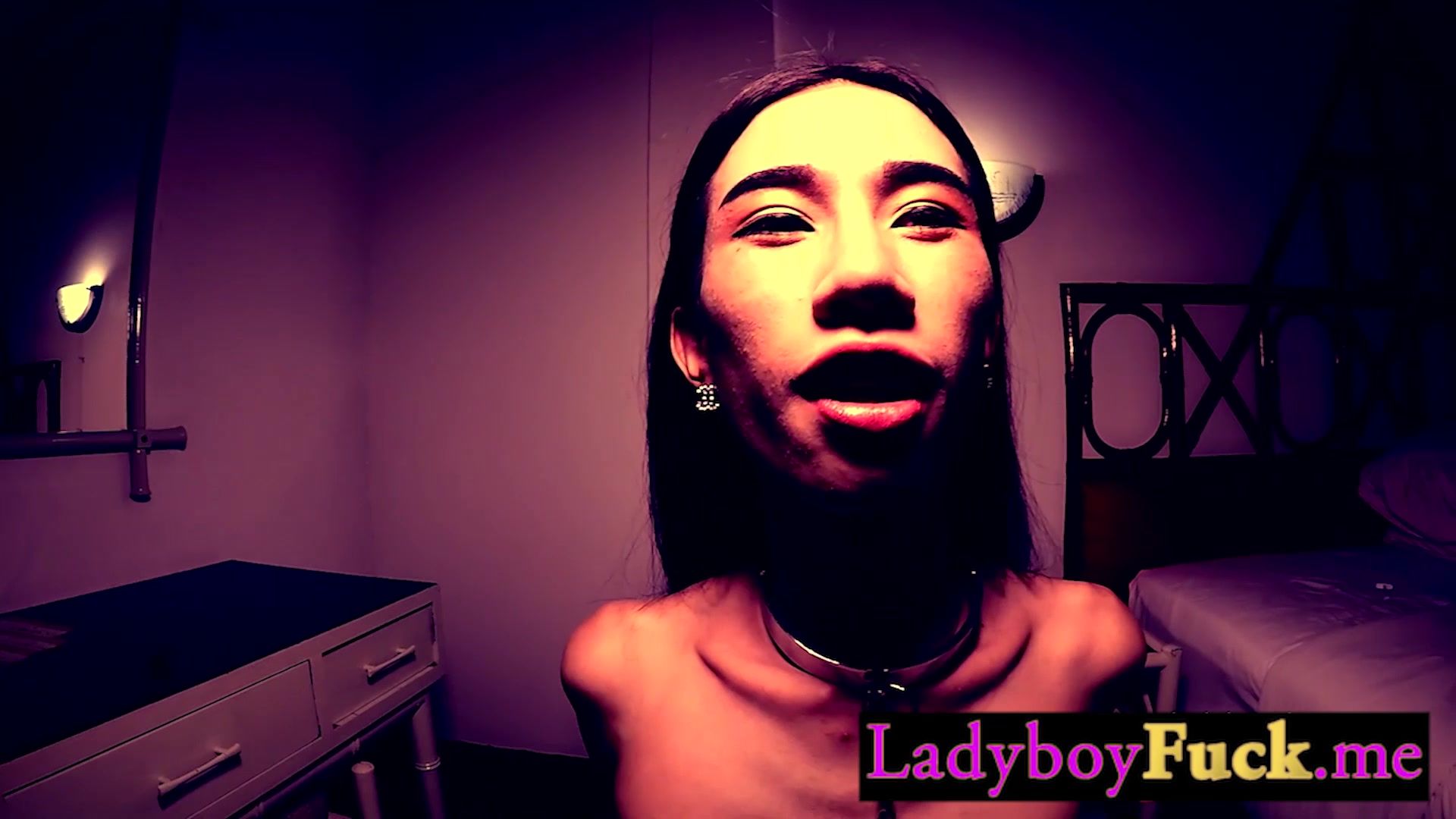 Slender Thai shemale swallows white dick and femboy pleased white client so horny tranny enjoyed white dick Asian femboy knelt and handcuffed tranny gave an amazing blowjob to white tourist with big cock