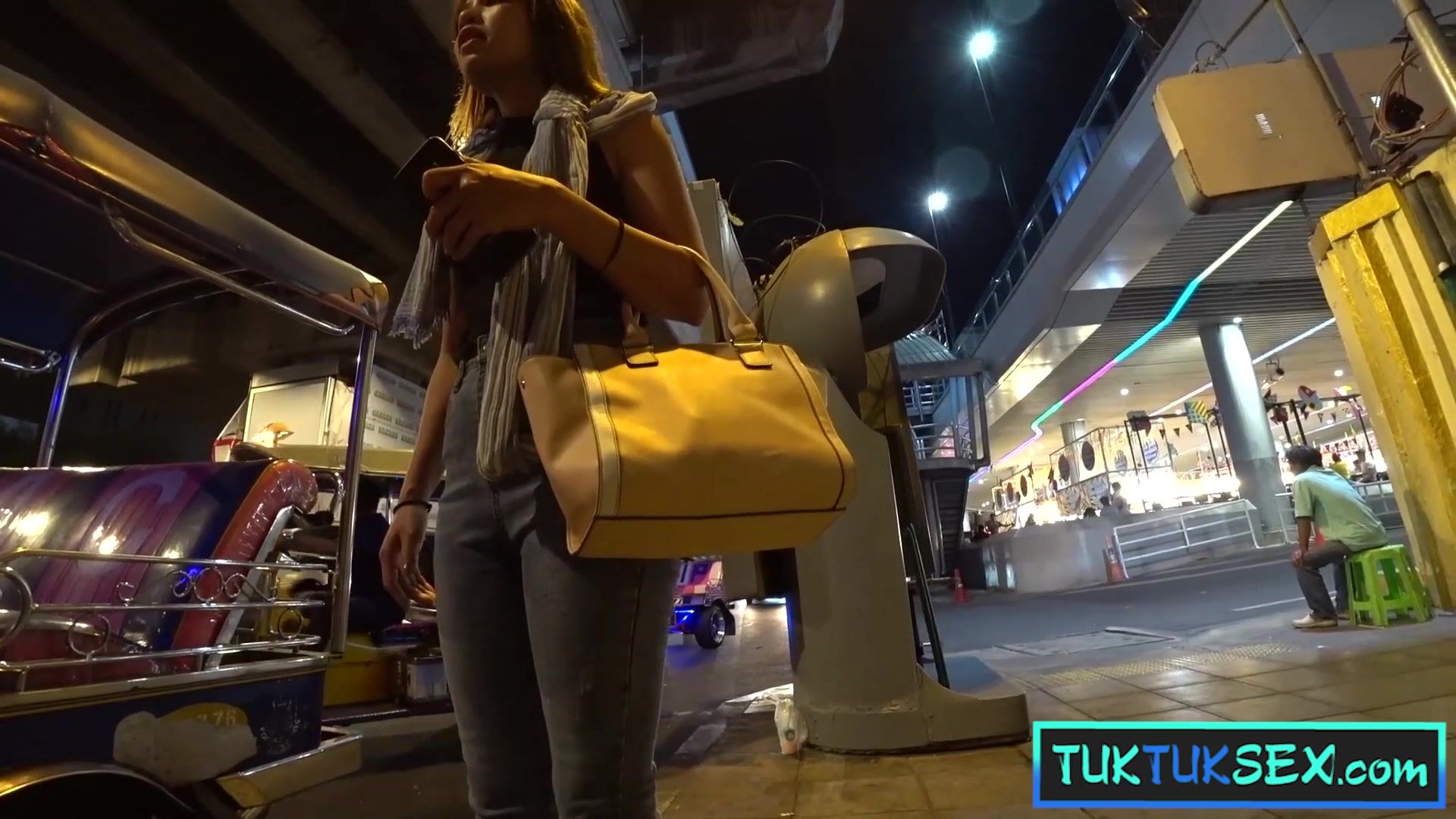 Shy Thai amateur girl gets a big cock as a birthday present after he picks her up somewhere in public and takes her for a ride in a Tuk Tuk going straight to his Airbnb apartment! This Asian cutie got naked for him revealing that hairy pussy that he fucks