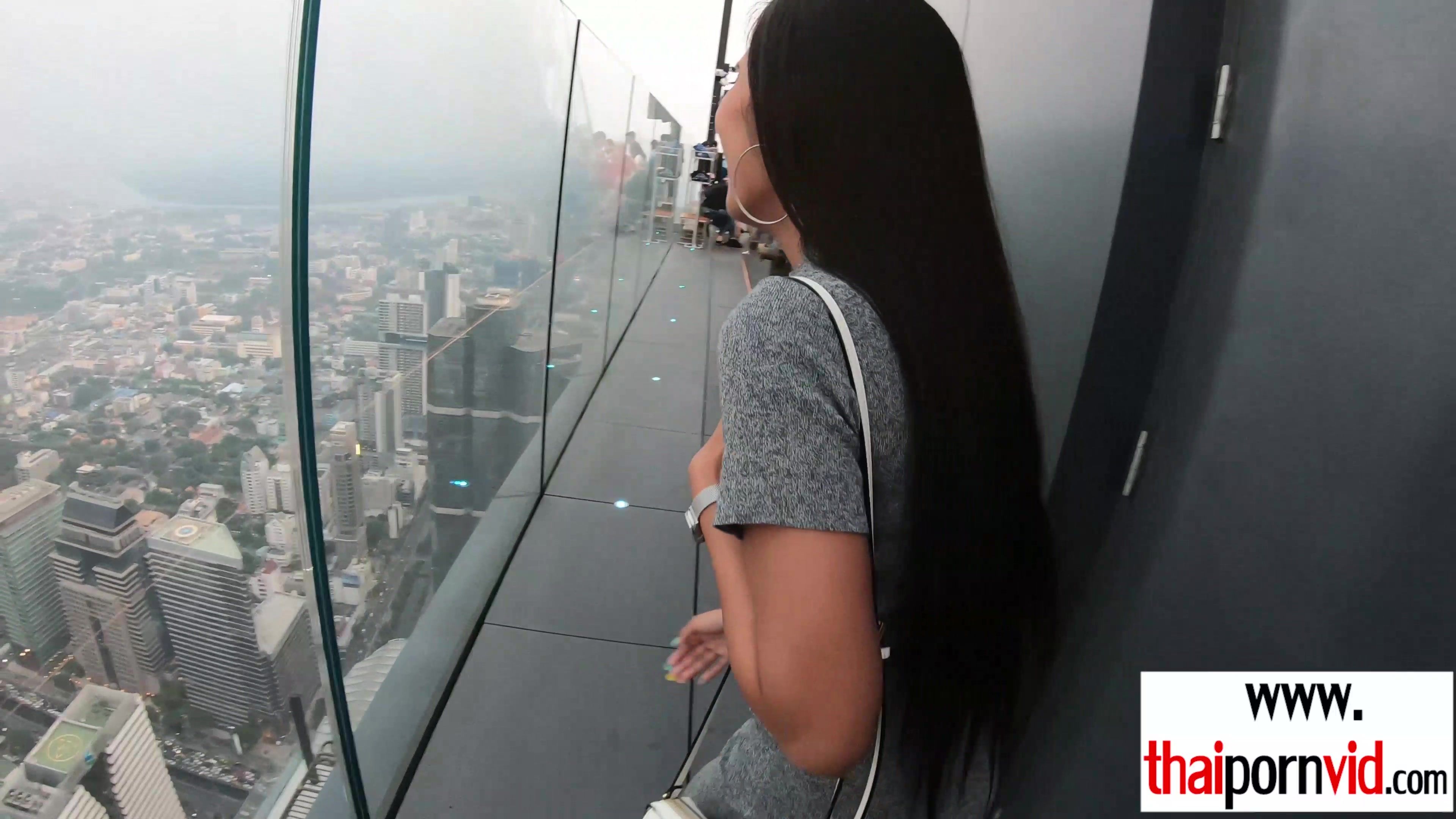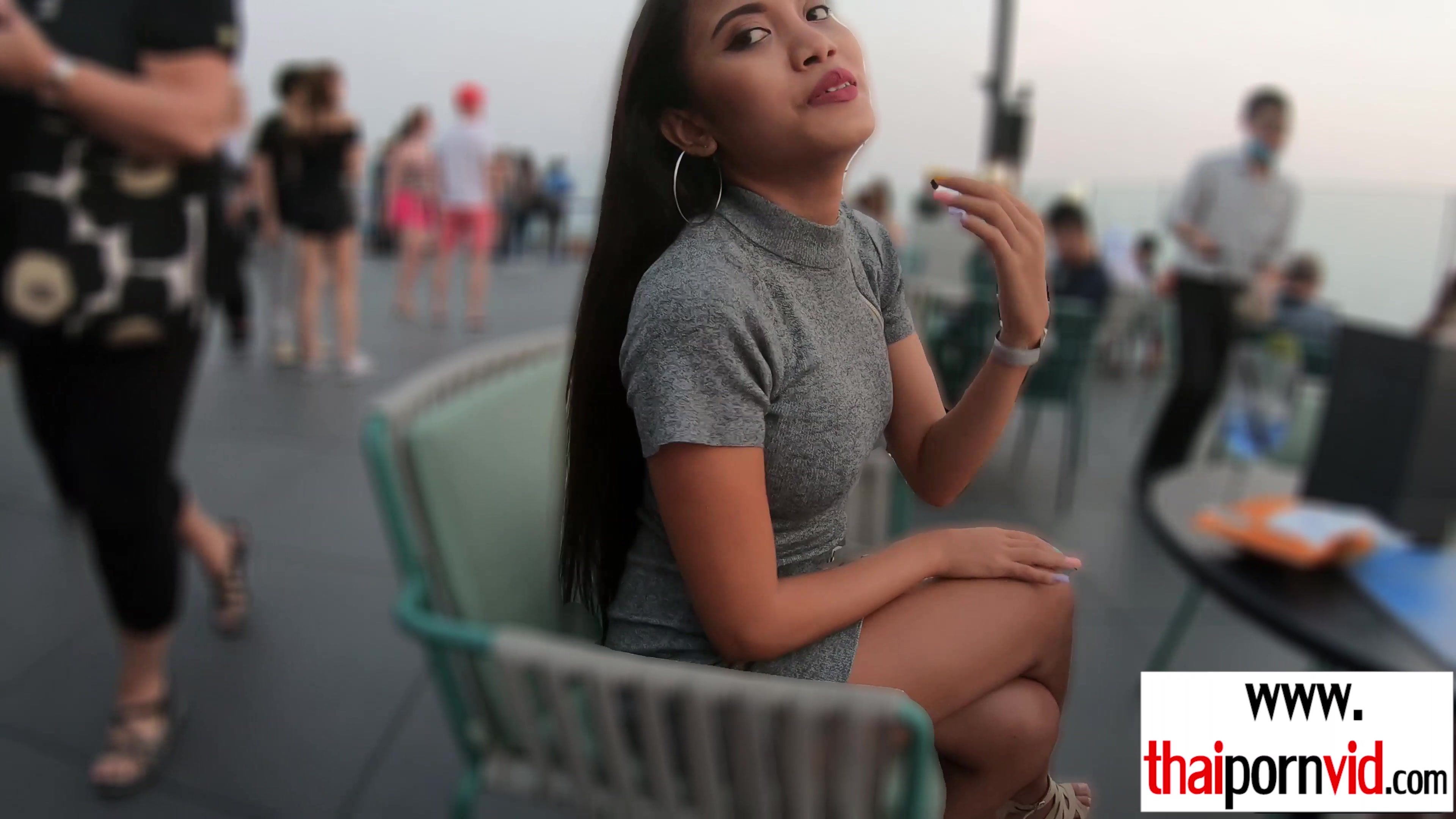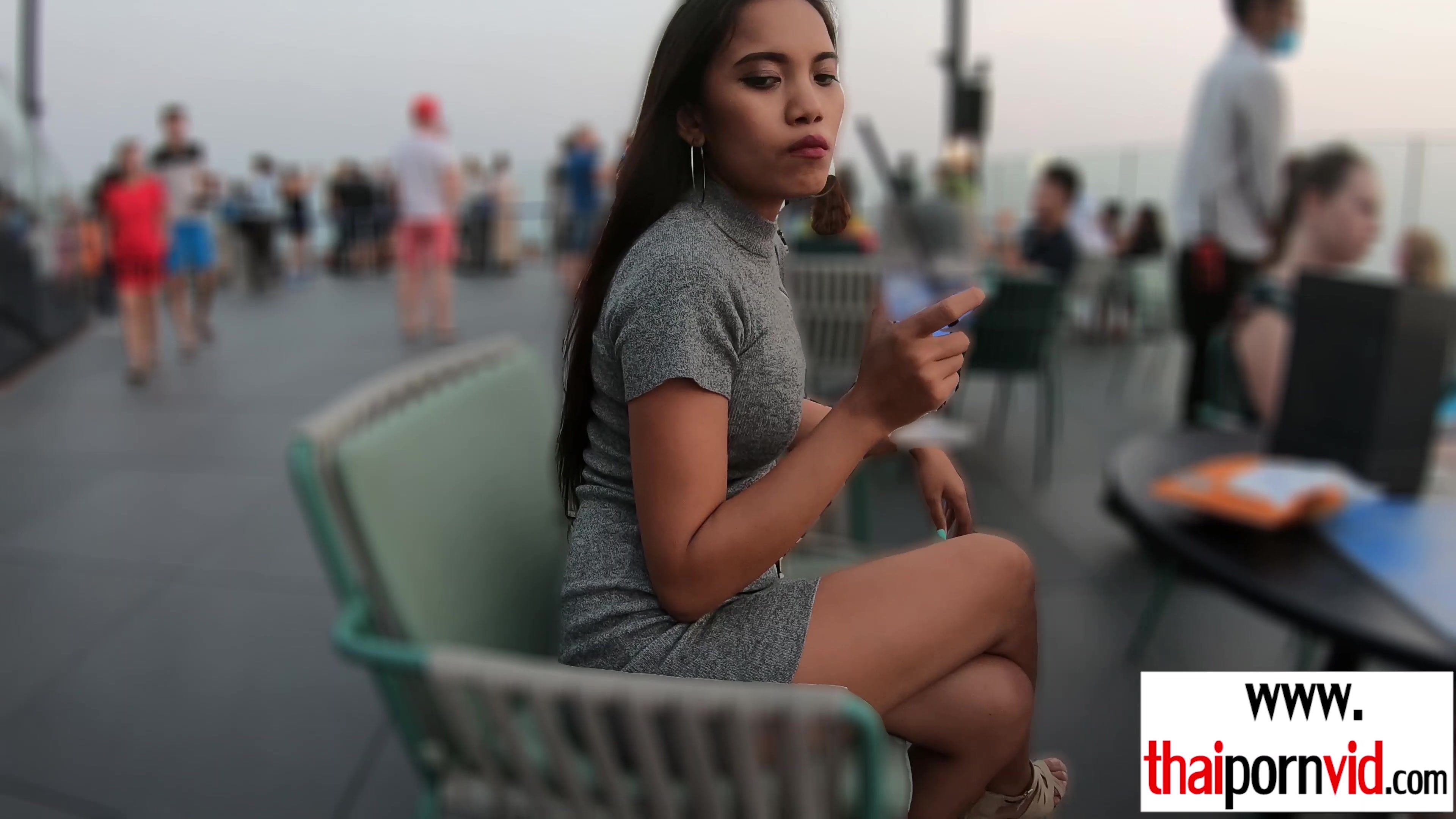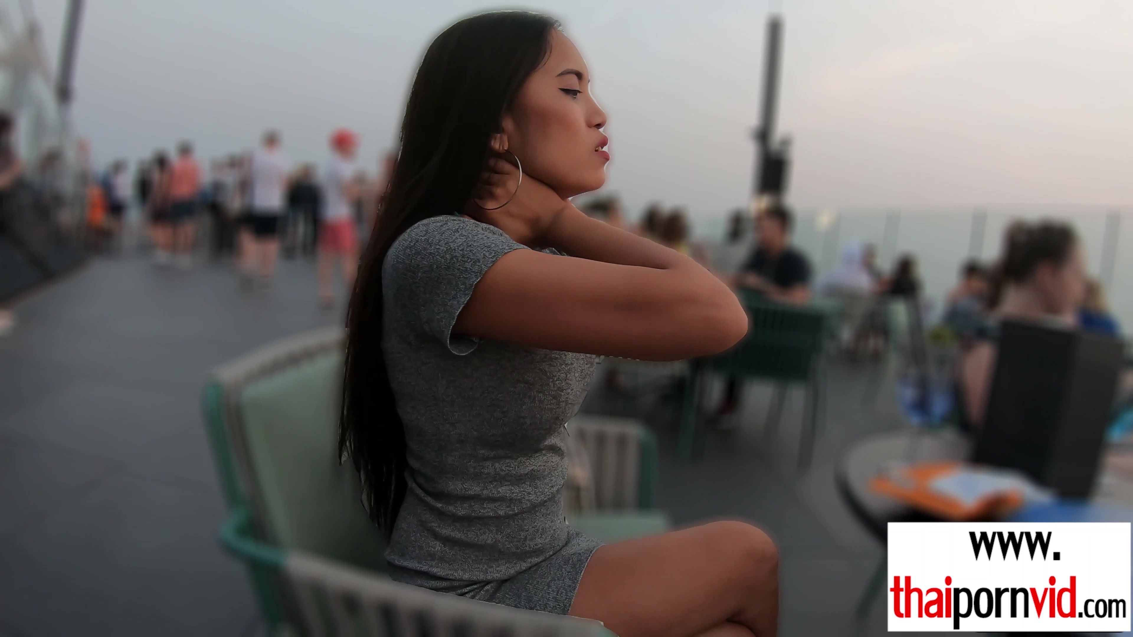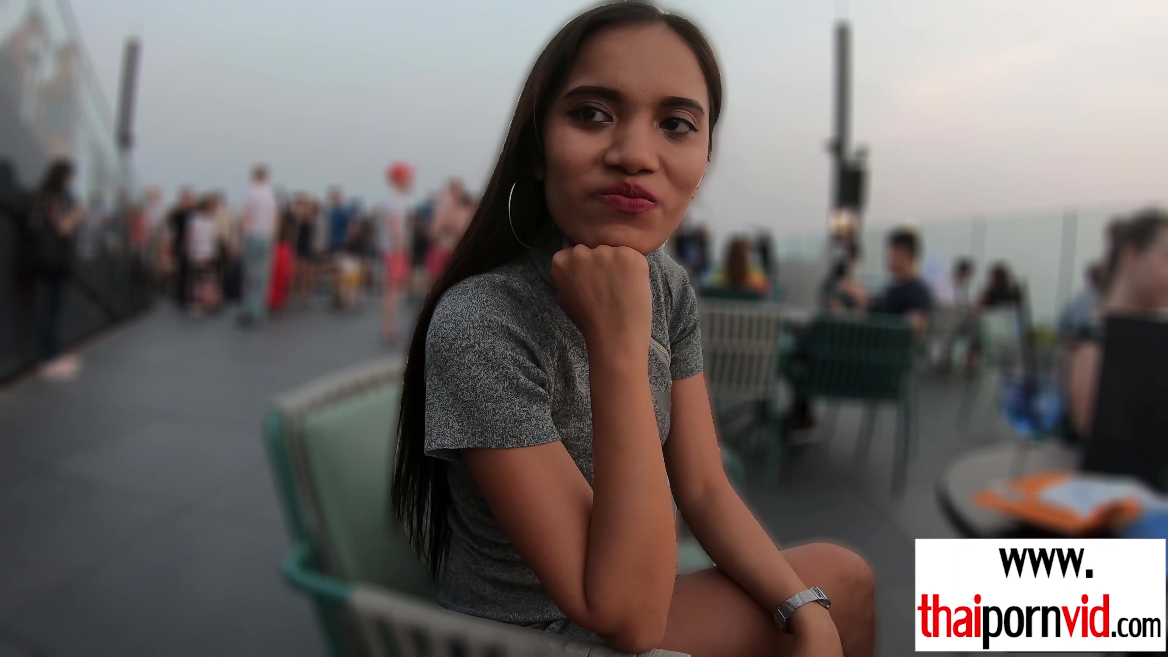 Petite amateur Thai teen Cherry with perfect natural tits spent a beautiful day with her european lover so she wants to say thank you in their hotel room She bends over on the bed and flashes her asian pussy then asks him to fuck her gently