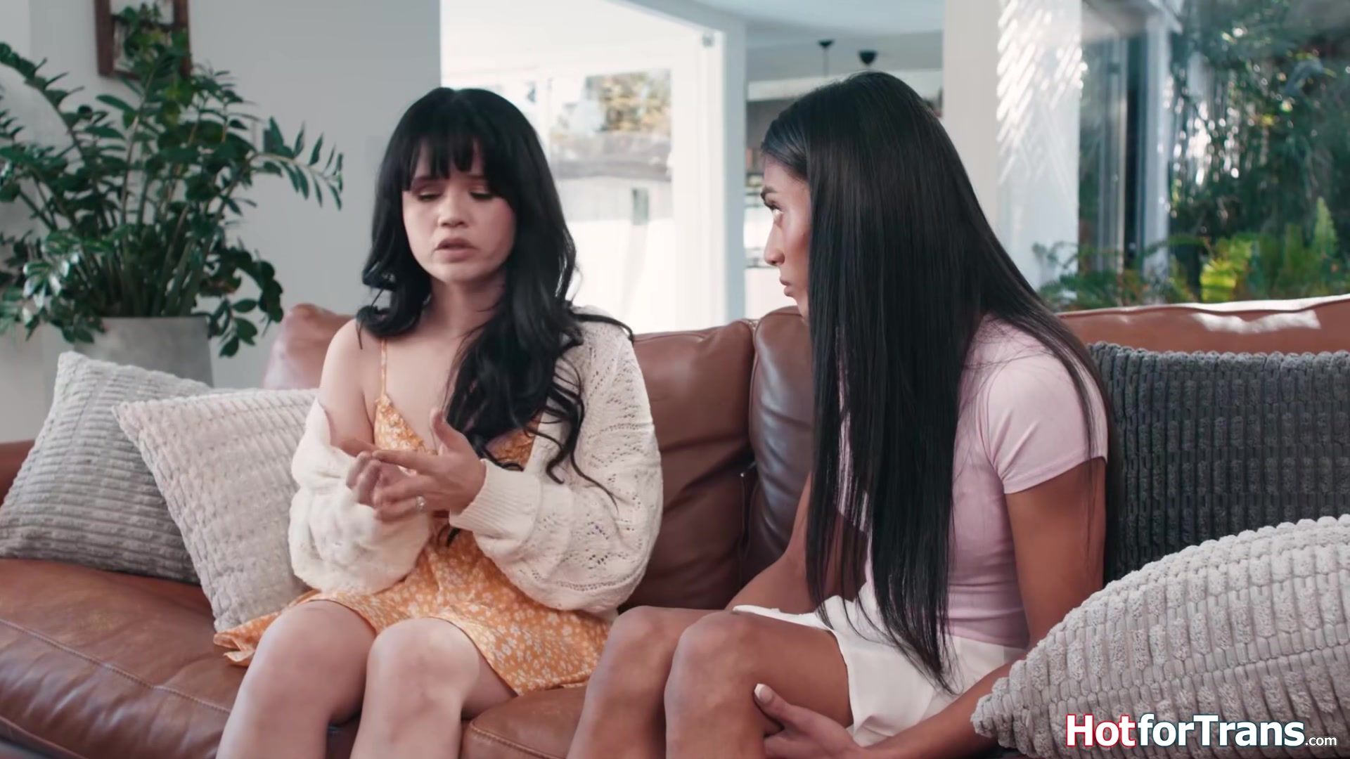 Yhivi convinces her asian tgirl doula Chanel Chance to fill her up.The latina kisses the petite shemale and deepthroats her hard tranny cock.The brunette trans licks her clients hairy pussy and stuffs it with her transsexual dick and fucks her